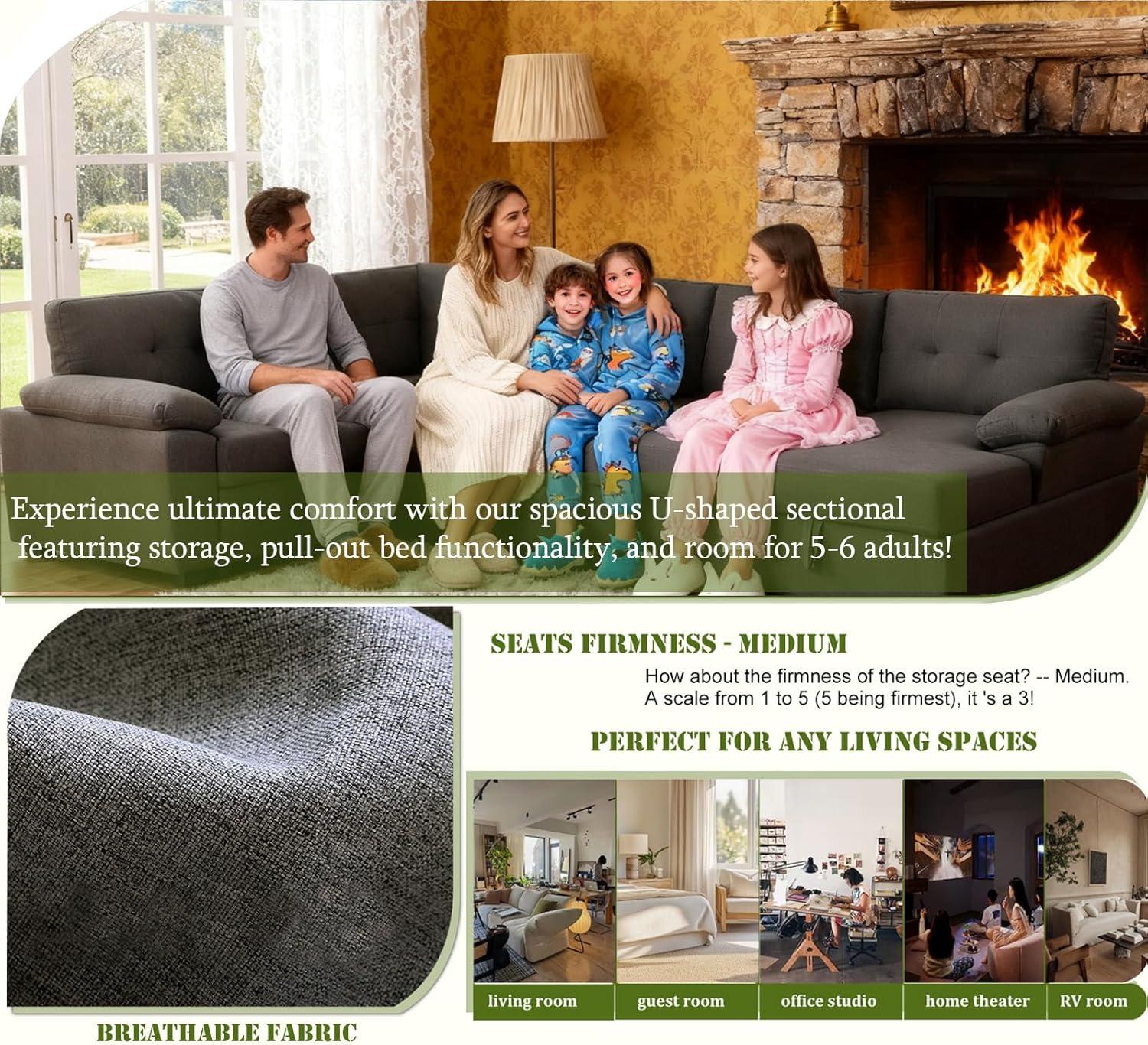 The pull-out couch function truly shines with its effortless conversion – it takes barely five seconds to transform the middle loveseat into a cozy bed. This quick mechanism means we can easily switch from entertaining guests to providing a comfortable sleeping area without the usual fuss. One standout feature is the option to leave the sofa unfolded while placing a coffee table in the middle,giving us versatile usage for everyday lounging or social gatherings. The deep seating and spacious U-shaped design comfortably accommodate 6-7 people, making it perfect for family movie nights or casual get-togethers. Plus,the bed itself fits up to three adults,delivering a restful experience that feels like sinking into a plush cloud,thanks to the high-resiliency sponge cushions and inner springs that prevent sagging.