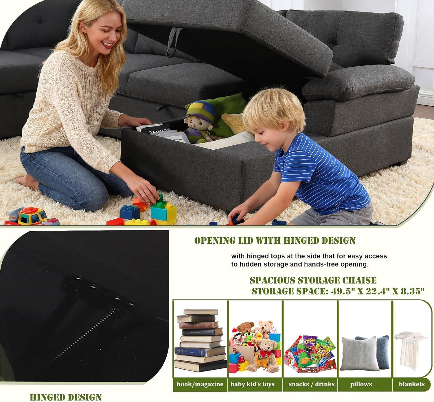 One of the standout features of this U-shaped sectional is the spacious storage integrated right into the chaise lounge. Measuring approximately 22.4″ x 49.5″ x 8.35″,the hinged top lifts effortlessly to reveal a hollow interior perfectly sized for storing blankets,books,magazines,or even board games. This clever incorporation means we can keep our living room clutter-free without sacrificing style or comfort.The storage space is deep enough to accommodate bulky items, making it ideal for families who need to balance everyday living with occasional overnight guests.