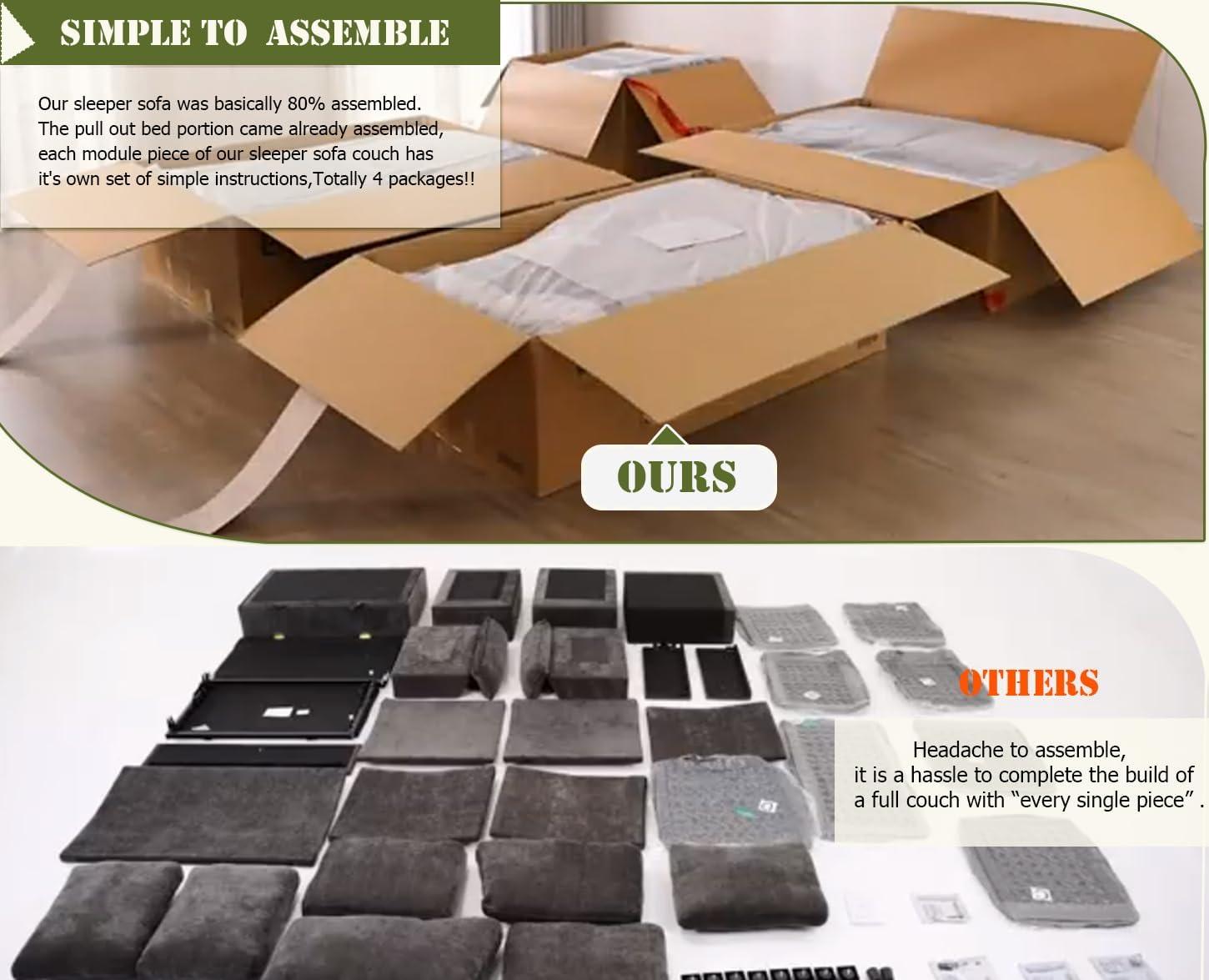 Setting up this oversized sectional sleeper was surprisingly straightforward, thanks to the fact that it arrived 80% preassembled. Each module came with its own set of clear, simple instructions, which made the overall process much smoother than we expected for a piece of this size. As the pull-out bed section was already put together,it saved us a considerable amount of time and effort. For the rest of the pieces, all we needed was a bit of muscle to align and secure them. No additional tools were necessary, which meant no scrambling for screwdrivers or worrying about lost parts. The modular design also allowed us to configure the sectional exactly how we liked before fully locking everything in place.