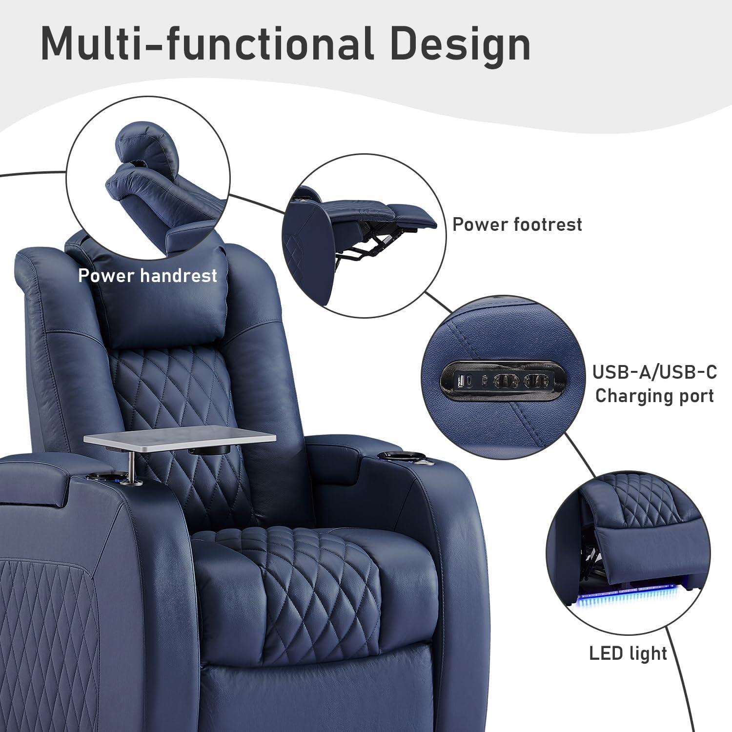 After spending considerable time with this recliner sectional, we can confidently say it transforms the living room into a sanctuary of comfort and style. The top grain leather not only looks stunning but feels incredibly soft, providing a perfect balance of durability and luxury. The memory foam cushions deliver remarkable support, easing pressure on our joints and spine as we reclined into various positions with just a touch.Features like the USB charging ports, blue LED ambient lighting, and the smart swivel tray table elevate convenience, making it ideal for everything from movie nights to casual reading sessions. The modular design impressed us the most-it easily adapts to different room sizes and layouts without any hassle, allowing us to customize our setup effortlessly as our needs changed.