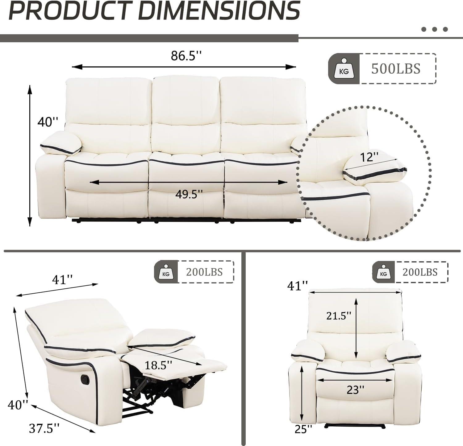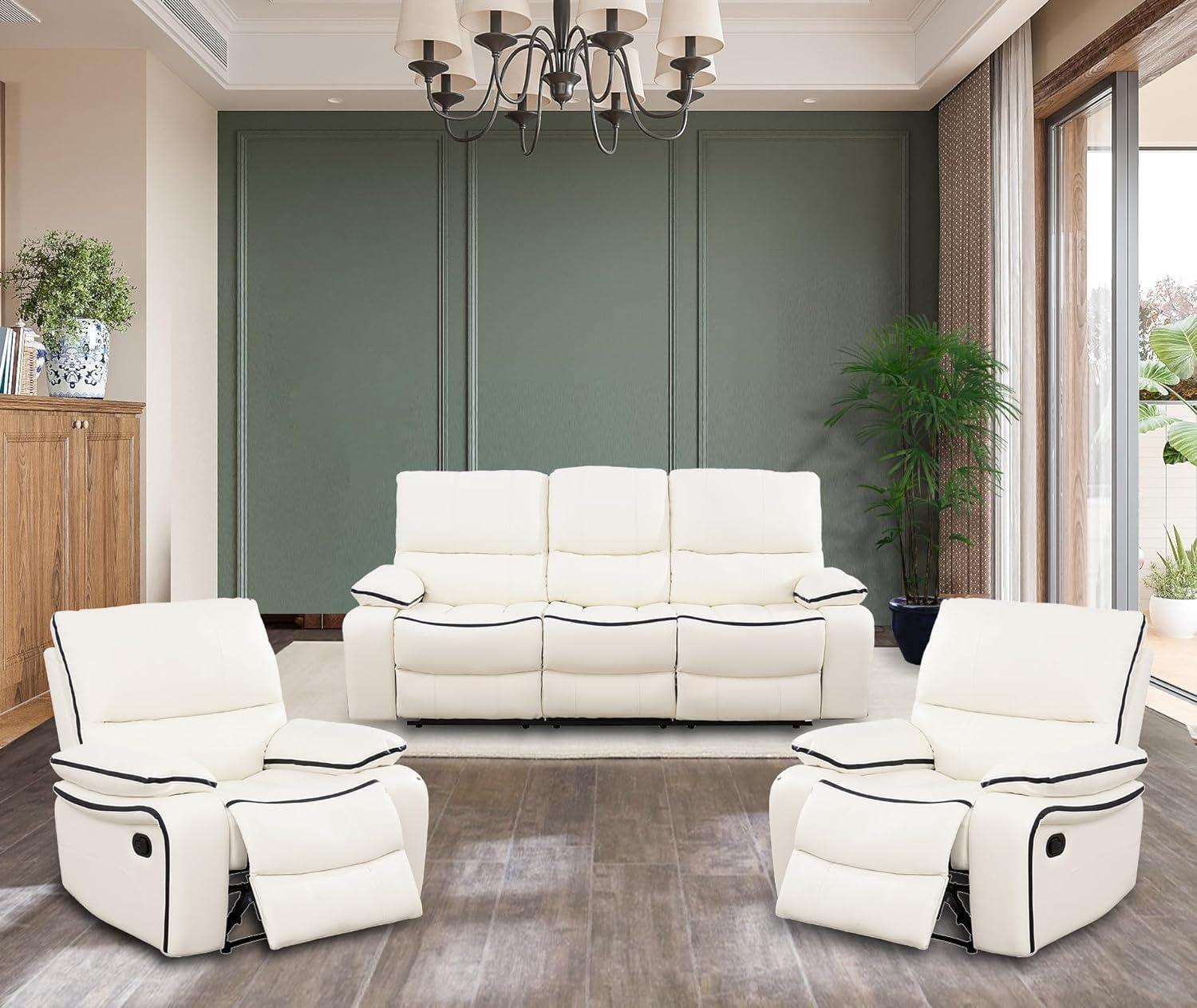 We recently had the chance to experience the Manual Reclining Living Room Furniture set in Ivory White-a bonded leather loveseat paired with two recliner chairs, complete with a drop-down console for added convenience. From its sturdy solid wood frame to the smooth manual reclining mechanism, this set promises both durability and comfort. Designed to blend seamlessly into living rooms, bedrooms, or even office spaces, it combines classic ergonomic support with a sleek look.Over the past few weeks, we’ve put this furniture through its paces to see if it lives up to the comfort and quality it advertises. Here’s what we found.