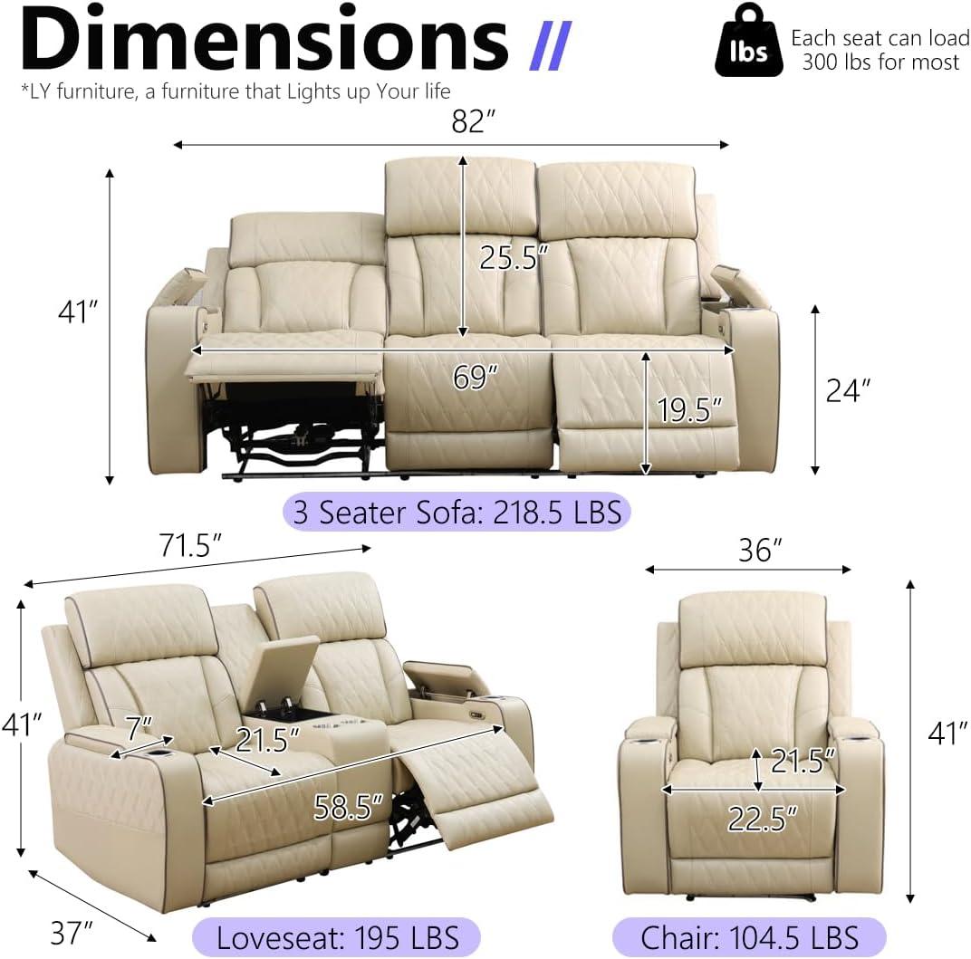 Functionality is where this set truly excels, tailored to accommodate diverse needs whether for relaxation at home or productivity at the office. Each piece features separate power reclining mechanisms, allowing independent adjustments from 110° to 160°, so everyone can find their perfect seating angle. Built-in conveniences such as hidden storage compartments, cup holders, and a convertible coffee table with wireless charging zones transform this furniture from mere seating into an all-in-one comfort station. The integration of thoughtful touches like adjustable reading lights further amplifies its usability without compromising the clean, modern lines.