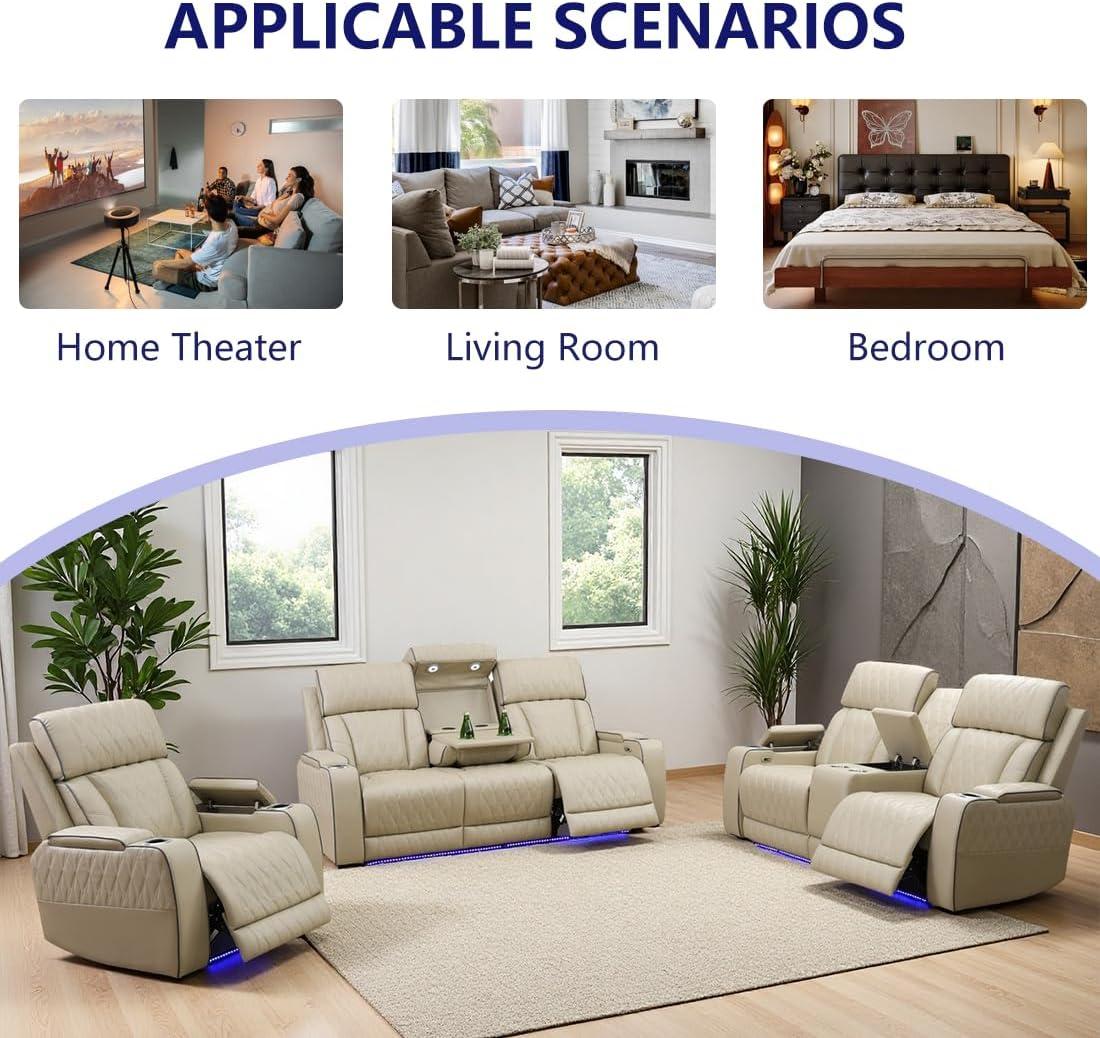 After spending considerable time with this reclining sofa set, we can confidently say it offers a superb balance of comfort, style, and practical convenience. The separate reclining mechanism allows each seat to adjust independently, making it perfect for couples or families who want personalized relaxation without compromising shared space.We especially appreciated the thoughtfully integrated features such as hidden armrest storage, cup holders, and a convertible center backrest that doubles as a coffee table with built-in charging zones. These small yet well-designed details truly enhance the daily usability, making it an excellent pick for both home and office environments.