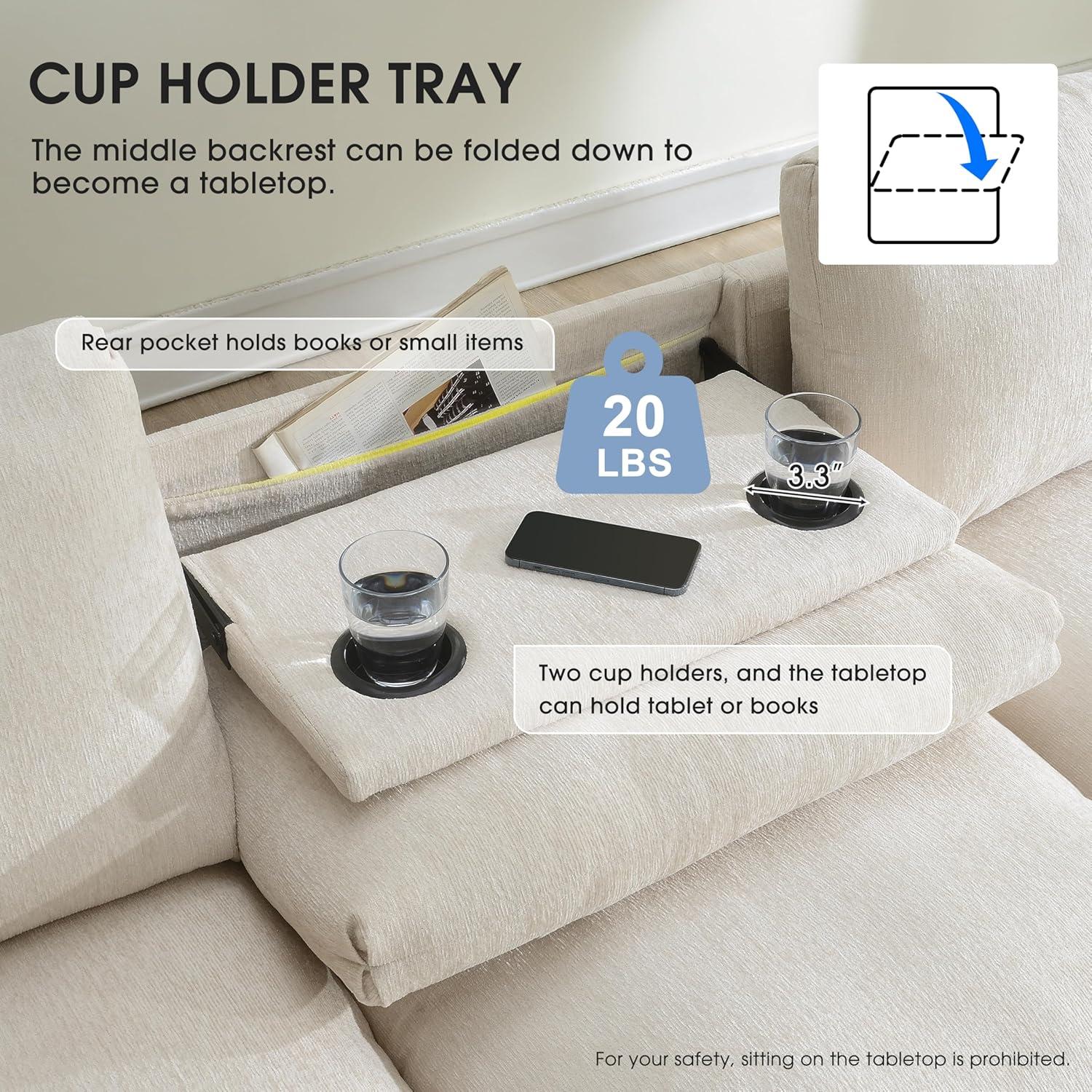 We found the seating experience to be exceptionally cozy thanks to the plush chenille fabric and wide seats that invite you to sink right in. the cushioning strikes a perfect balance between softness and support, making it ideal for long lounging sessions or casual gatherings. Integrated into the design are thoughtful features like cup holders that securely hold your beverages, reducing the risk of spills as you relax with a book or enjoy a movie marathon. The drop-down table adds versatility, transforming the space into a convenient spot for snacks, work, or play without compromising the sofa’s sleek appearance.
