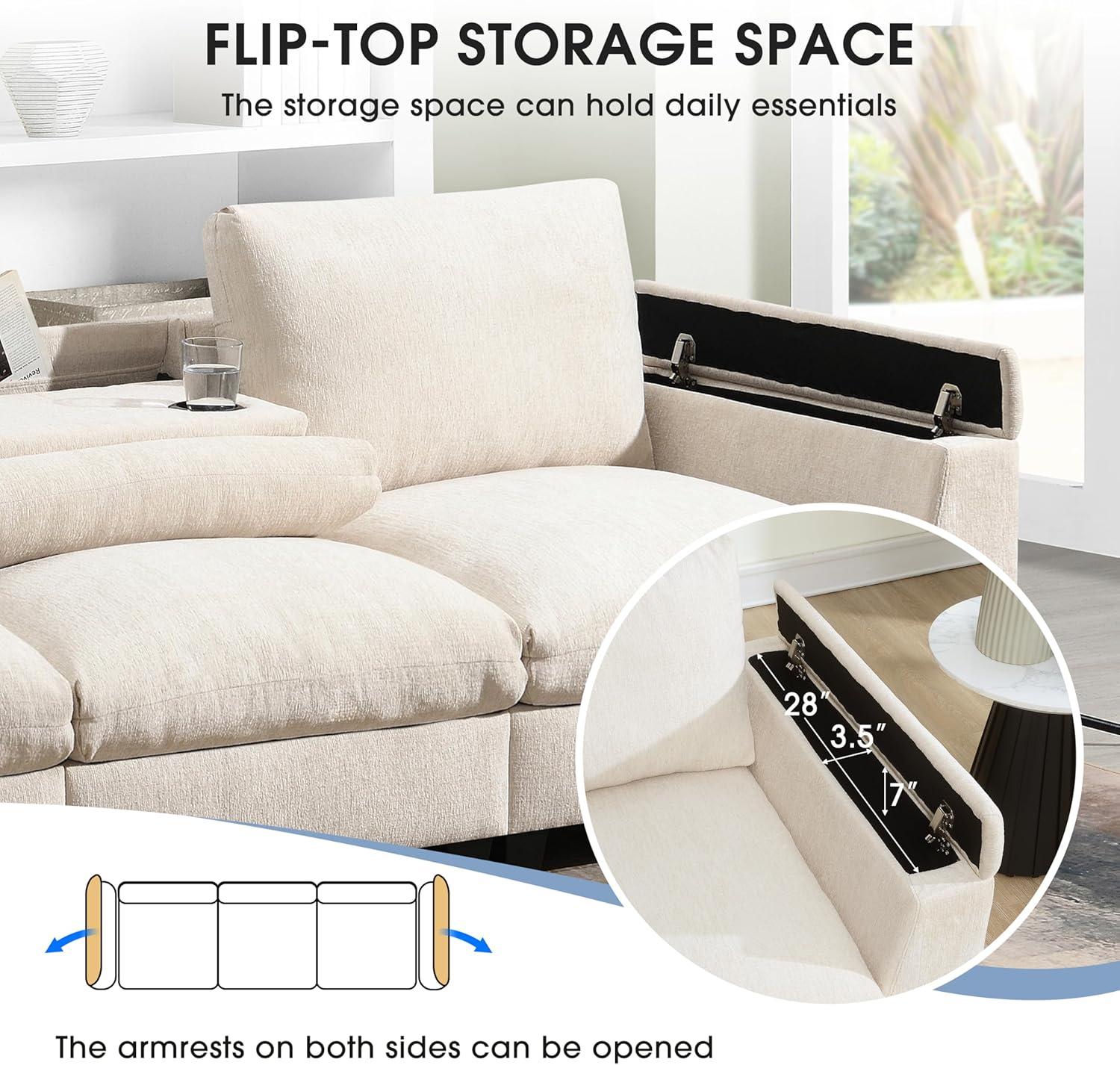 This sectional sofa masterfully blends comfort with contemporary convenience, creating a versatile centerpiece for any living space. Wrapped in soft chenille fabric, it offers a wide seating area that feels like sinking into a cozy cloud. Practical features like built-in cup holders and a fold-down table enhance everyday functionality, making it perfect for relaxing, entertaining, or even working from home. The design cleverly incorporates hidden storage compartments within the armrests, providing an elegant solution to keep remotes, magazines, or blankets neatly tucked away while maintaining a clutter-free habitat.