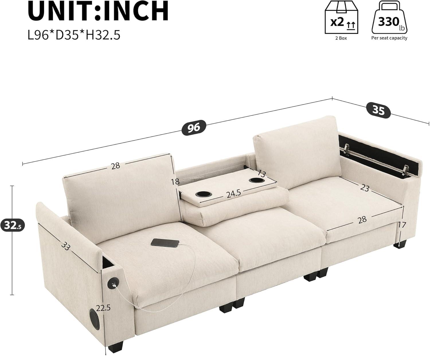 Measuring 96 by 35 inches, this sofa strikes a fine balance between spacious comfort and versatile footprint, making it suitable for a wide range of spaces-from cozy apartments to modern office lounges. Its wide seat design allows us to stretch out without feeling cramped, while the relatively compact depth keeps it from overwhelming smaller rooms. the integrated drop-down table adds adaptability without extra furniture crowding our setup, and the built-in storage armrest cleverly hides remotes and essentials, helping maintain a clean, uncluttered look even in limited layouts.