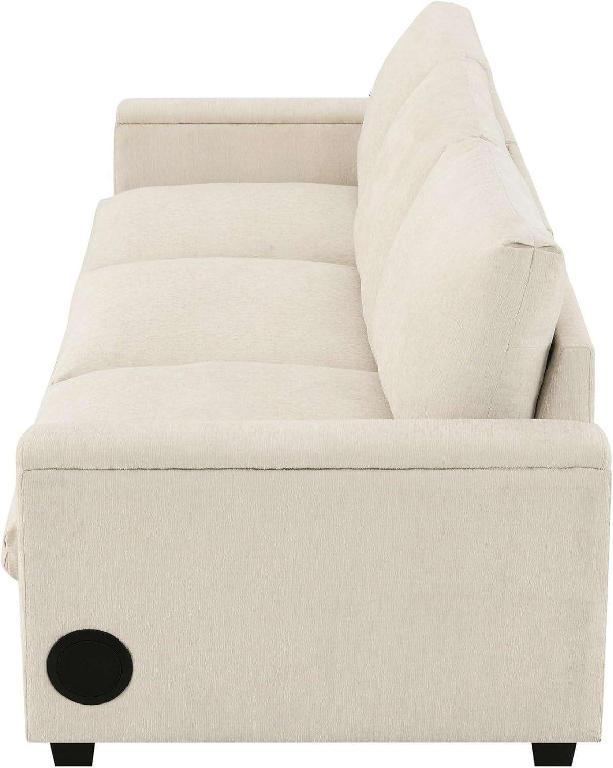 Technology seamlessly integrates with style thanks to the built-in Bluetooth speakers and USB charging ports. This smart inclusion eliminates the need for extra devices and cords, giving your space a sleek, streamlined look without sacrificing connectivity or entertainment options. whether in a compact apartment, spacious living room, or office setting, the combination of smart storage, multifunctional accents, and plush comfort makes this sofa a standout choice. Its modern aesthetic is enhanced by three tasteful color options, ensuring it blends effortlessly with your existing decor.