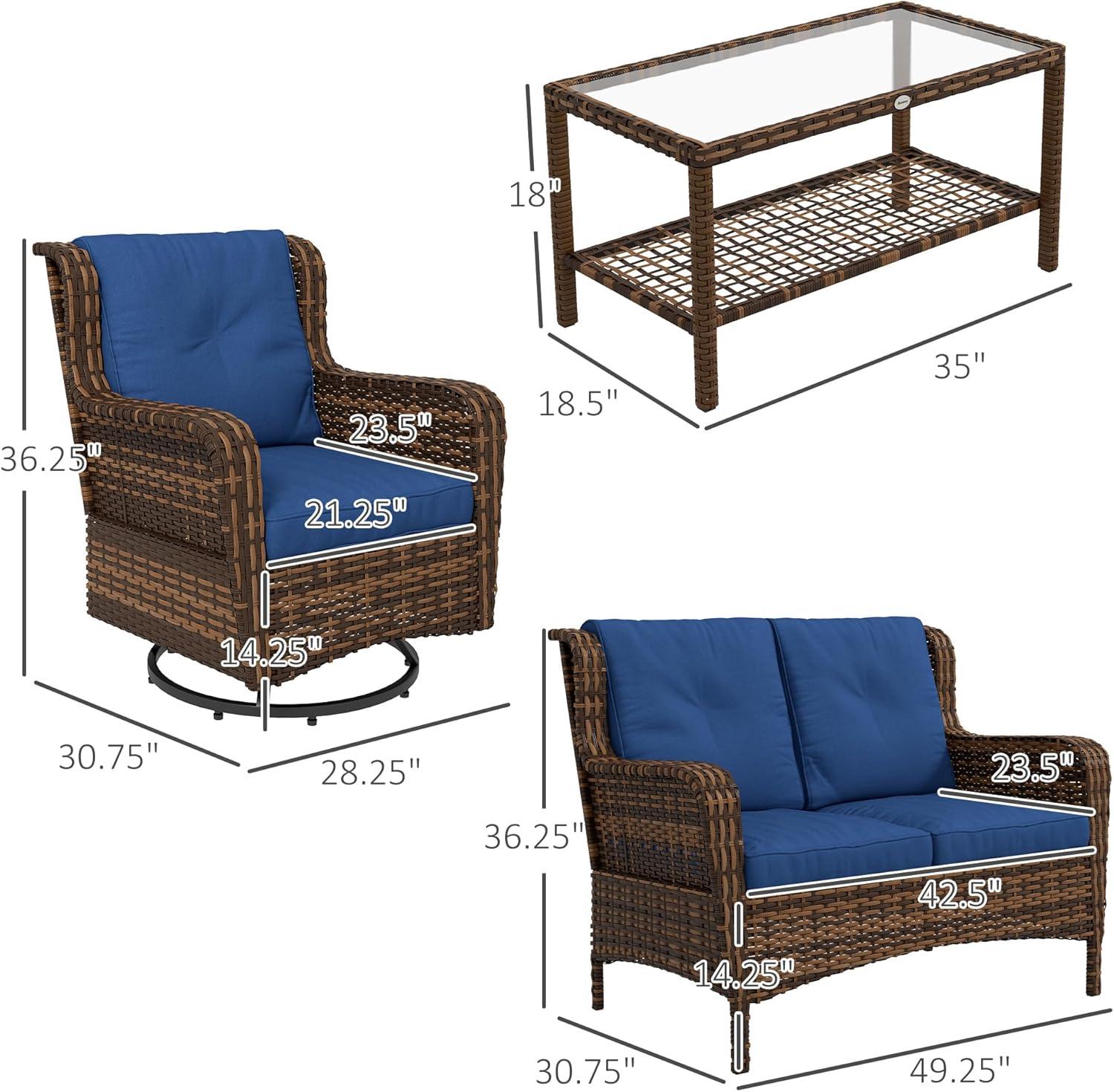 This 4-piece patio furniture set strikes a fine balance between style and practicality.Crafted with handwoven PE wicker over powder-coated steel frames, it promises durability and weather resistance while maintaining an elegant, classic appearance. The set features a loveseat and two swivel glider chairs, each with tufted cushions that have removable covers for effortless cleaning. The 360° swivel gliders add a fun, dynamic element to outdoor lounging, allowing us to fully enjoy the garden, patio, or poolside while relaxing or entertaining guests.