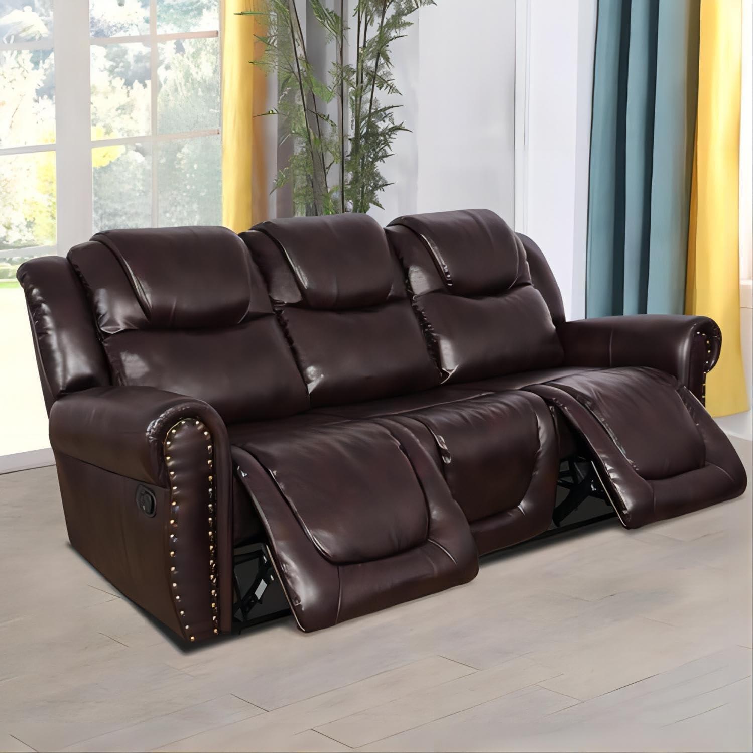 Incorporating this brown leather recliner set into different spaces transforms each room with effortless sophistication and practicality.Its rich, warm tone brings a comforting elegance, whether placed in a modern living room, cozy bedroom nook, or even an executive office. The sleek leather upholstery not only exudes luxury but also complements a variety of color palettes and interior styles-from rustic charm to contemporary minimalism.The manual reclining feature adds a dynamic element, inviting relaxation while maintaining a polished silhouette that doesn’t overpower the décor.