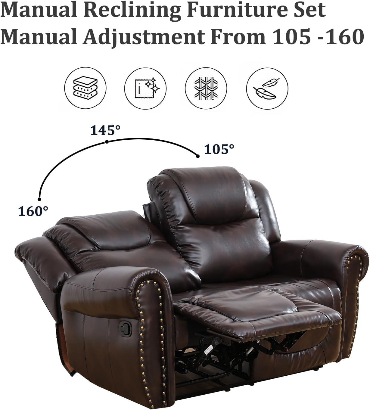 After thoroughly testing this reclining furniture set, we can confidently say it strikes a great balance between comfort and practicality.The manual reclining mechanism operates smoothly, allowing users to adjust their seating position with ease. We particularly appreciated the integrated storage compartments and cupholders, which add a layer of convenience rarely found in similarly priced living room sets. The rich brown leather finish not only elevates the aesthetic appeal but also offers durability that withstands daily use, making it suitable for living rooms, bedrooms, or even office spaces.