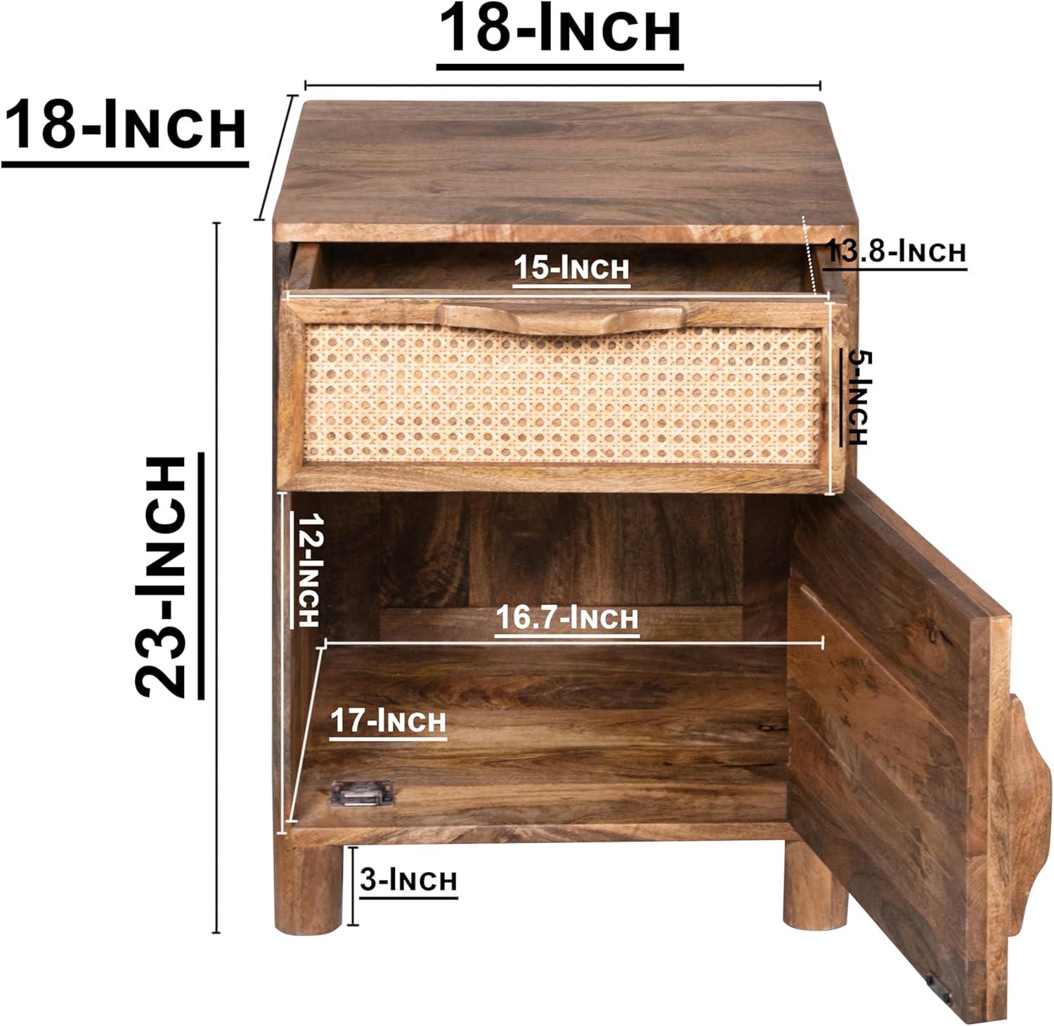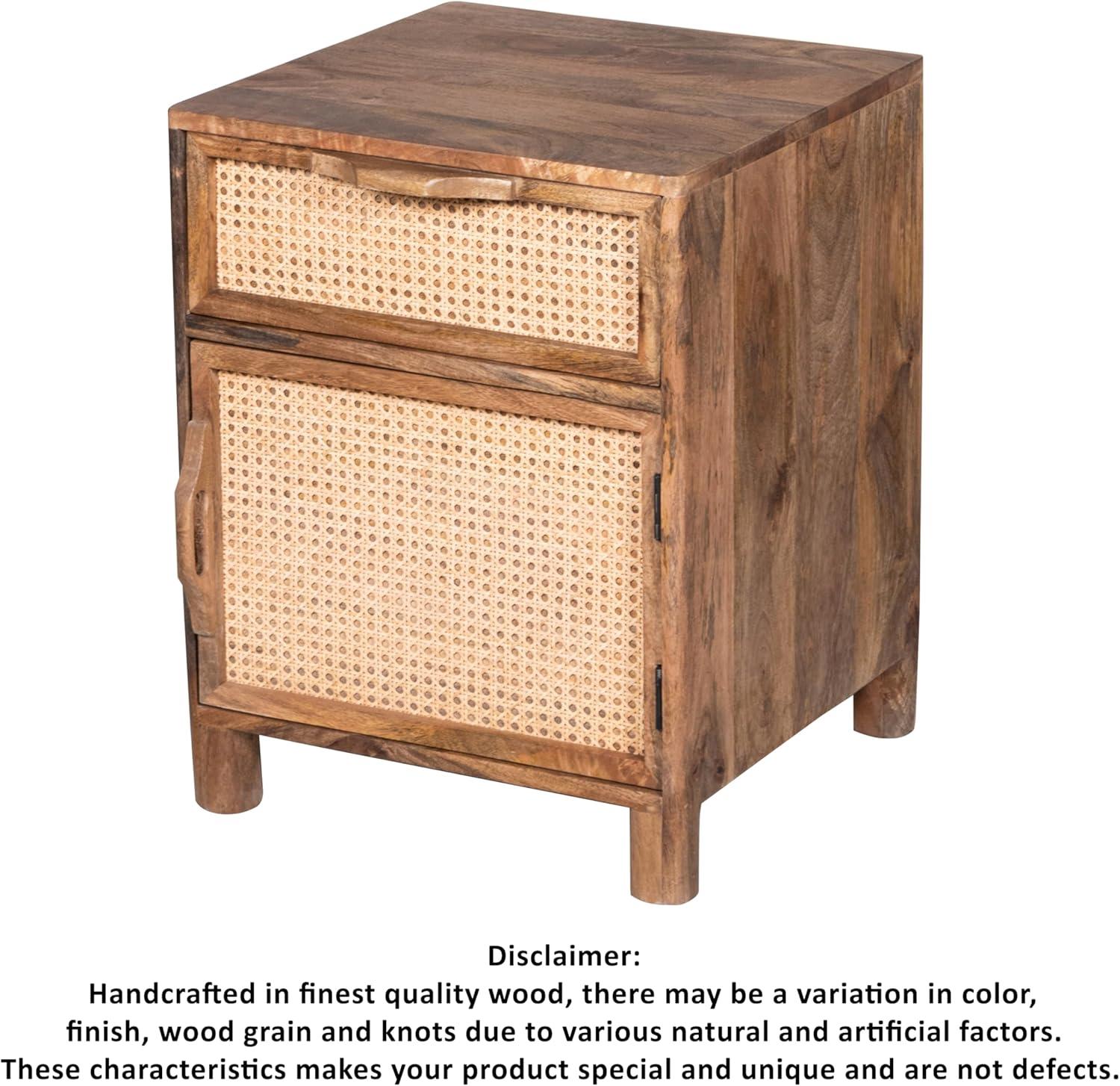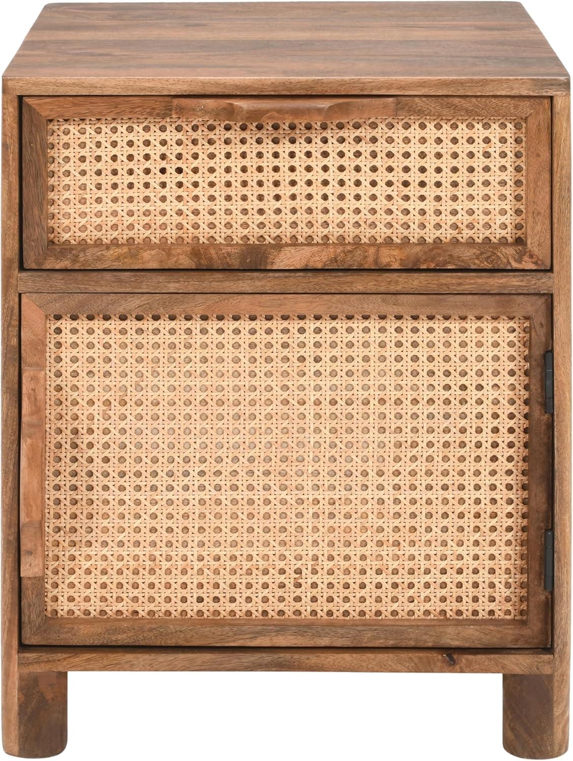 you run your hand across the top and feel the warm, slightly uneven grain of mango wood under your palm. Urban Port’s mia nightstand—the 23-inch woven-cane piece—reads quietly considerable, giving the bedside a calm visual anchor without looking bulky. The cane front softens the shape; the drawer and single cabinet melt into the pattern untill you open them and the same wood texture continues inside. Its three-inch legs lift the unit just enough to let light slip beneath, and the top wears a lamp and a mug without seeming cluttered. When the magnetic door closes it makes a muted,reassuring click,and up close the varied brown finish and tiny knots make the piece look like it’s been part of the room for a while.