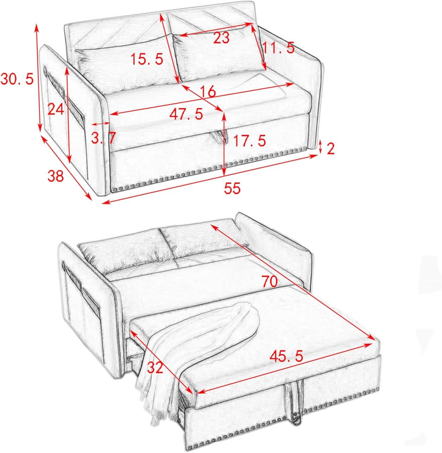 - 3-in-1 functionality: Sofa, loveseat, and full sleeper