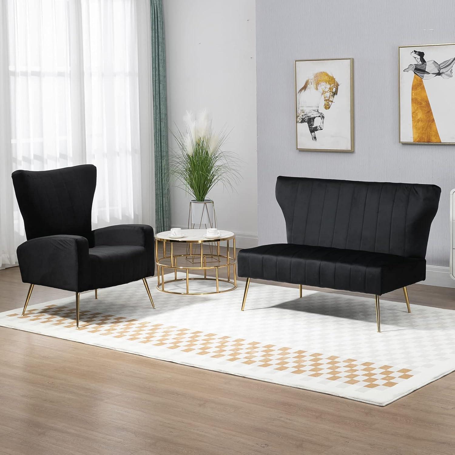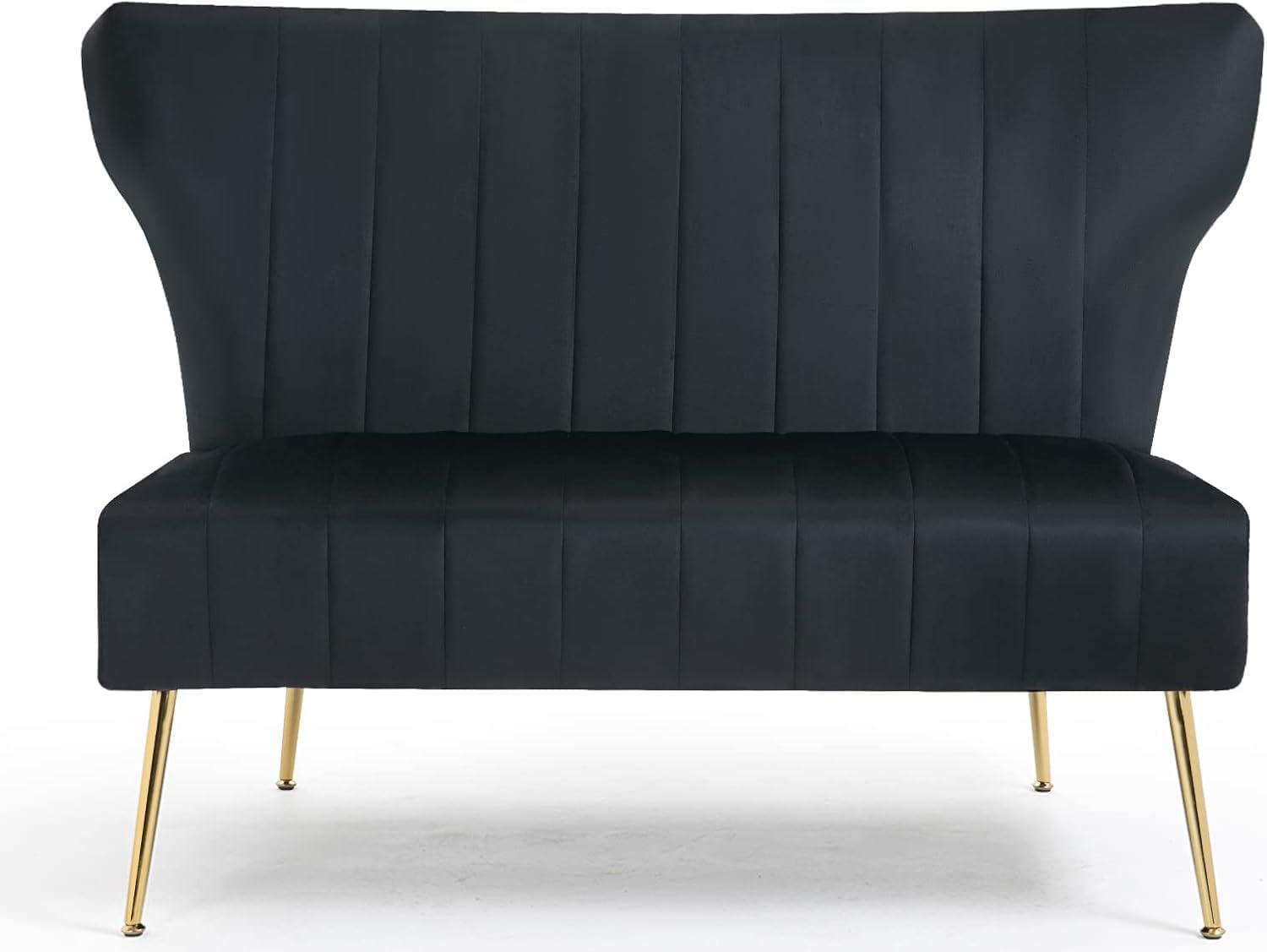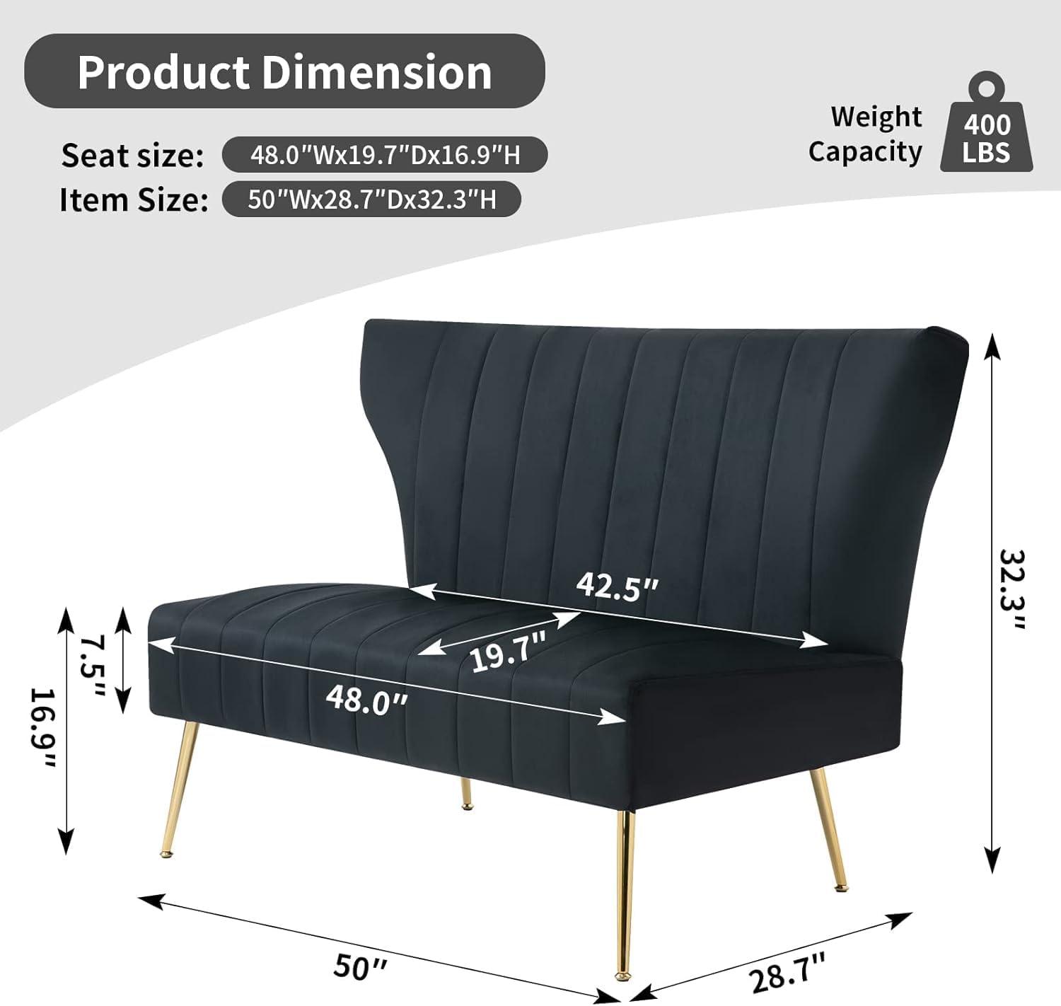 This loveseat stands out for combining elegant design with practical features,making it a fantastic choice for anyone looking to maximize comfort and style in limited spaces.The plush velvet upholstery paired with the channel tufted backrest adds a refined touch that instantly elevates any room’s decor. Its sturdy solid wood frame complemented by golden metal legs not only ensures durability but also supports up to 400 pounds, promising a reliable piece that lasts. Filled with high-density sponge cushions, it maintains shape and comfort even after long-term use, making it great for lounging after a busy day.