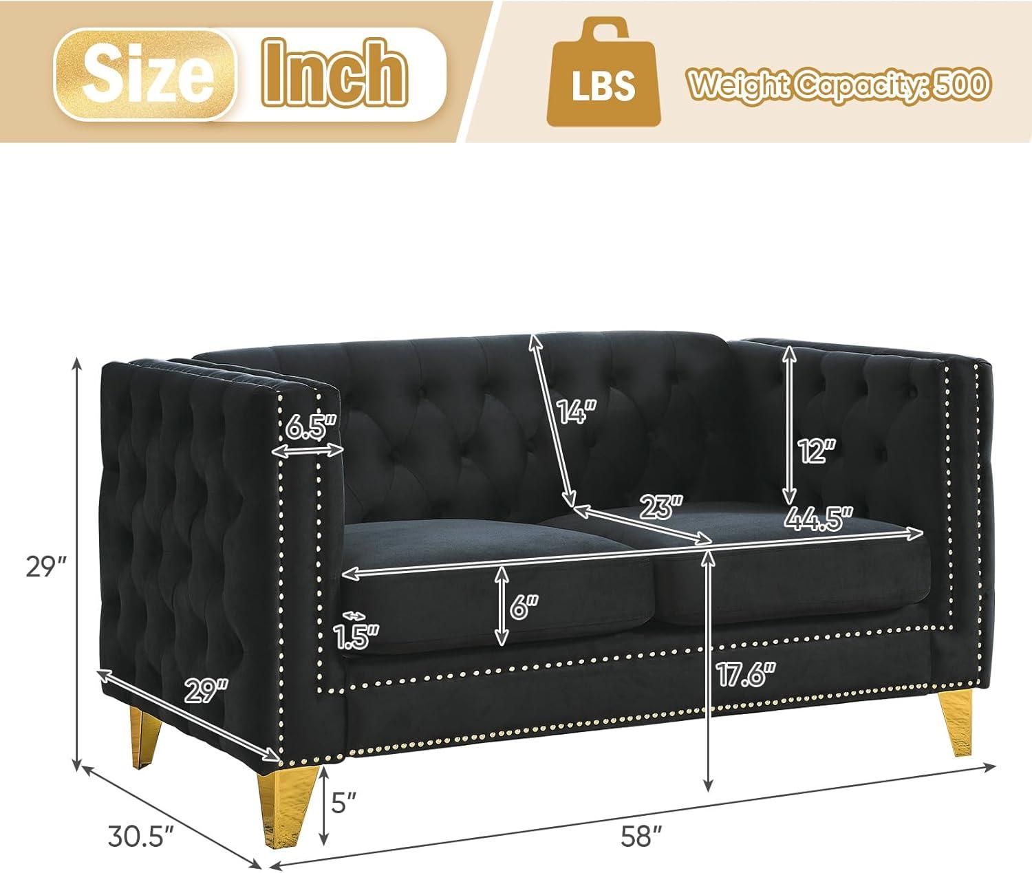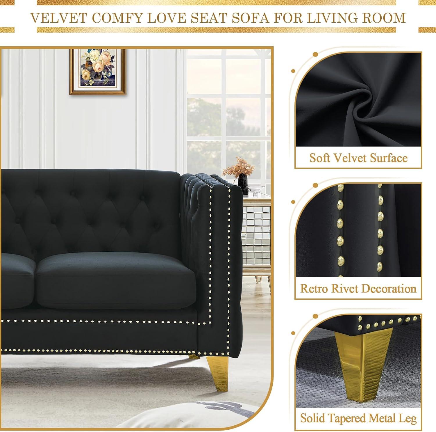 | Stylish & Modern Design: The tufted backrest combined with golden rivet details and tapered metal legs gives the set a chic,glamorous vibe that elevates any room. | Color Options: Available only in black, which may limit coordination with lighter or more colorful decor themes. |