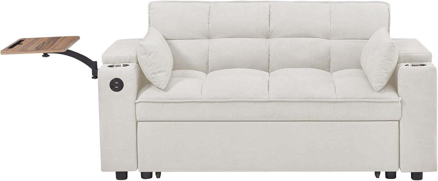 The thoughtful integration of practical features truly sets this sofa apart. Multi-functional armrests with hidden storage, built-in USB ports, and cupholders offer convenient spots for our daily essentials and tech devices, while the 360° rotatable side table enhances usability without clutter. Assembly was straightforward thanks to clear instructions and a complete tool kit, and the loveseat’s compact dimensions fit neatly into our room without sacrificing comfort.this convertible sleeper has become our go-to furniture for lounging, working, and welcoming overnight guests.