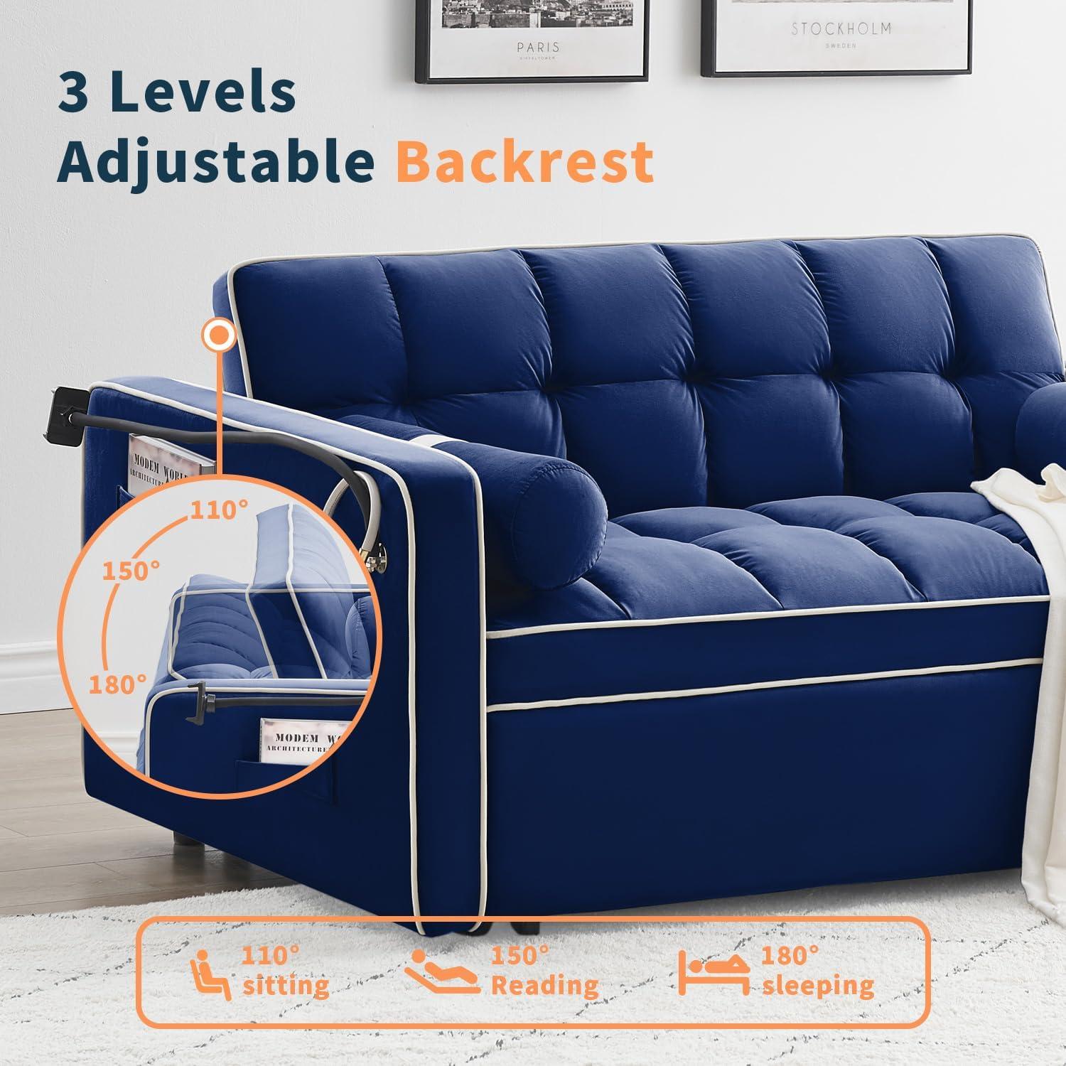 the Versatile Velvet Sleeper Sofa Bed offers an elegant blend of style, comfort, and functionality that fits perfectly into any living space-whether it’s a cozy apartment or a spacious living room. With its premium velvet upholstery, sturdy reinforced frame, and the convenience of a 3-level adjustable backrest, this 3-in-1 convertible loveseat truly adapts to our everyday needs. The added swivel phone stand and easy assembly make it even more practical for modern living.We appreciate how it effortlessly transitions from loveseat to futon to full sleeper, providing comfort and versatility without compromising on design. If you’re looking to maximize your space without sacrificing style, this sleeper sofa bed could be exactly what your home needs.