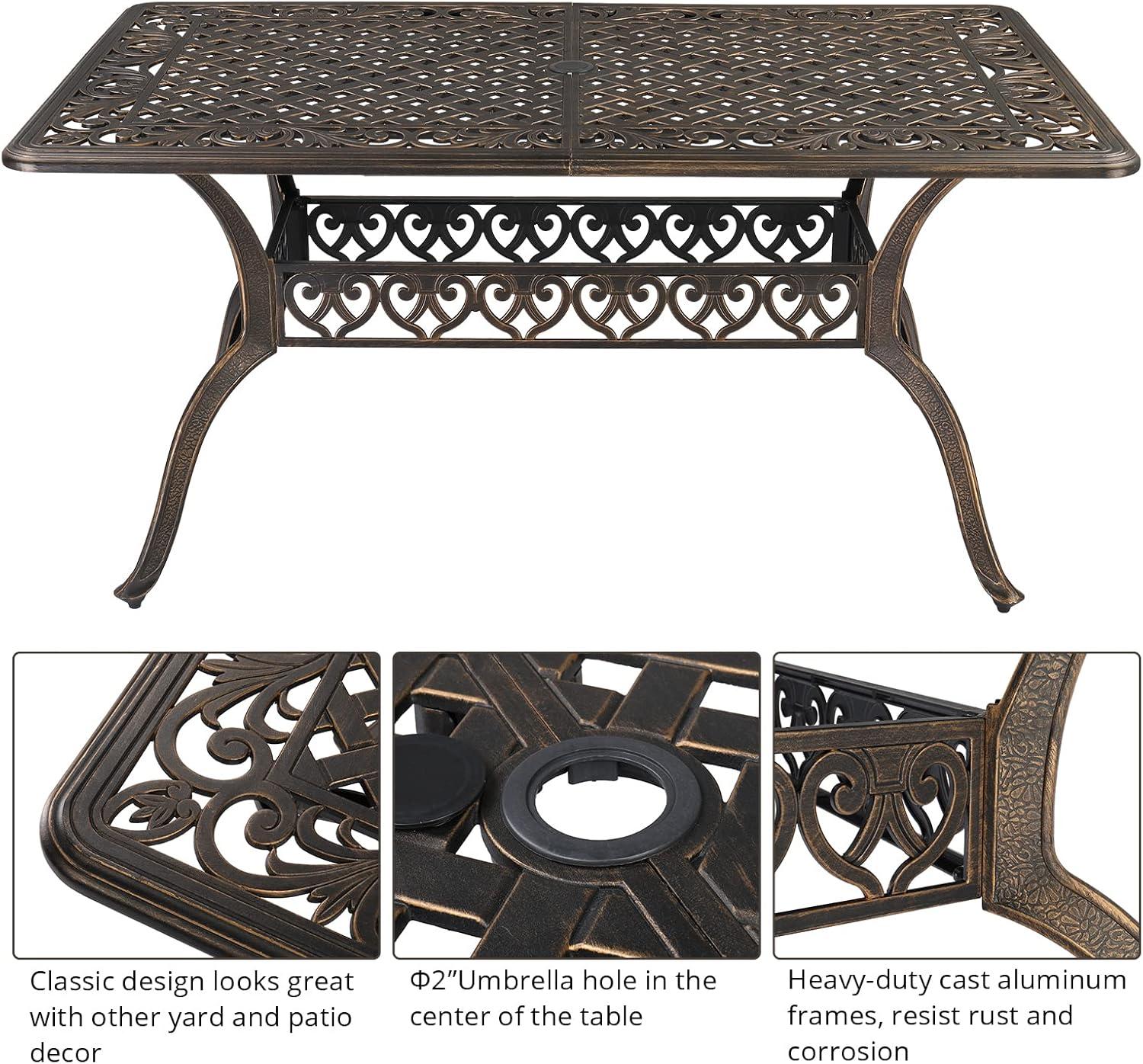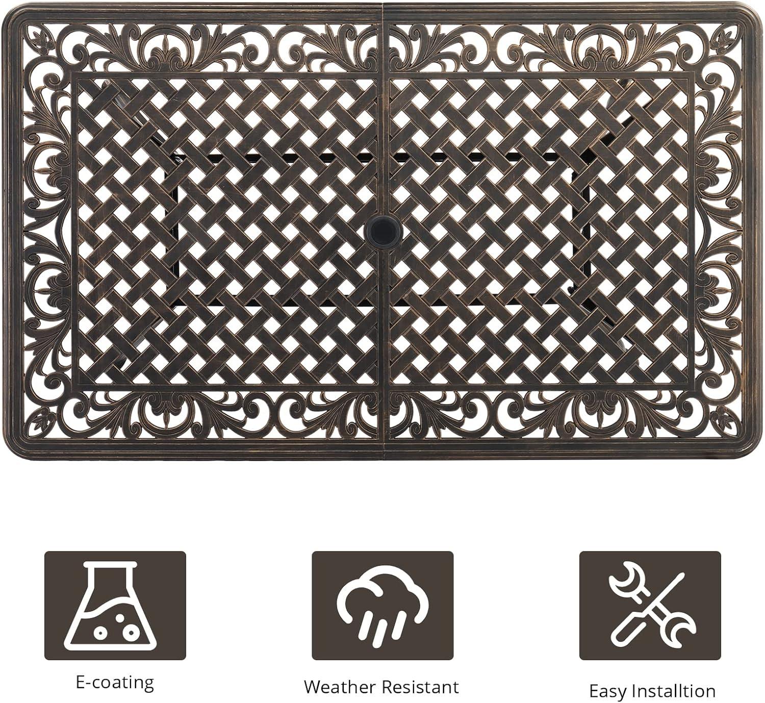 Beyond the umbrella hole, the table’s dimensions and sturdy cast aluminum frame speak volumes about its durability and practicality. It comfortably seats six without feeling cramped, and the powder-coated finish ensures it withstands all weather conditions without rust or wear. We appreciate the overall stable feel it provides-no wobbling, even during lively outdoor meals. Here’s a quick run-down of the table’s key specs: