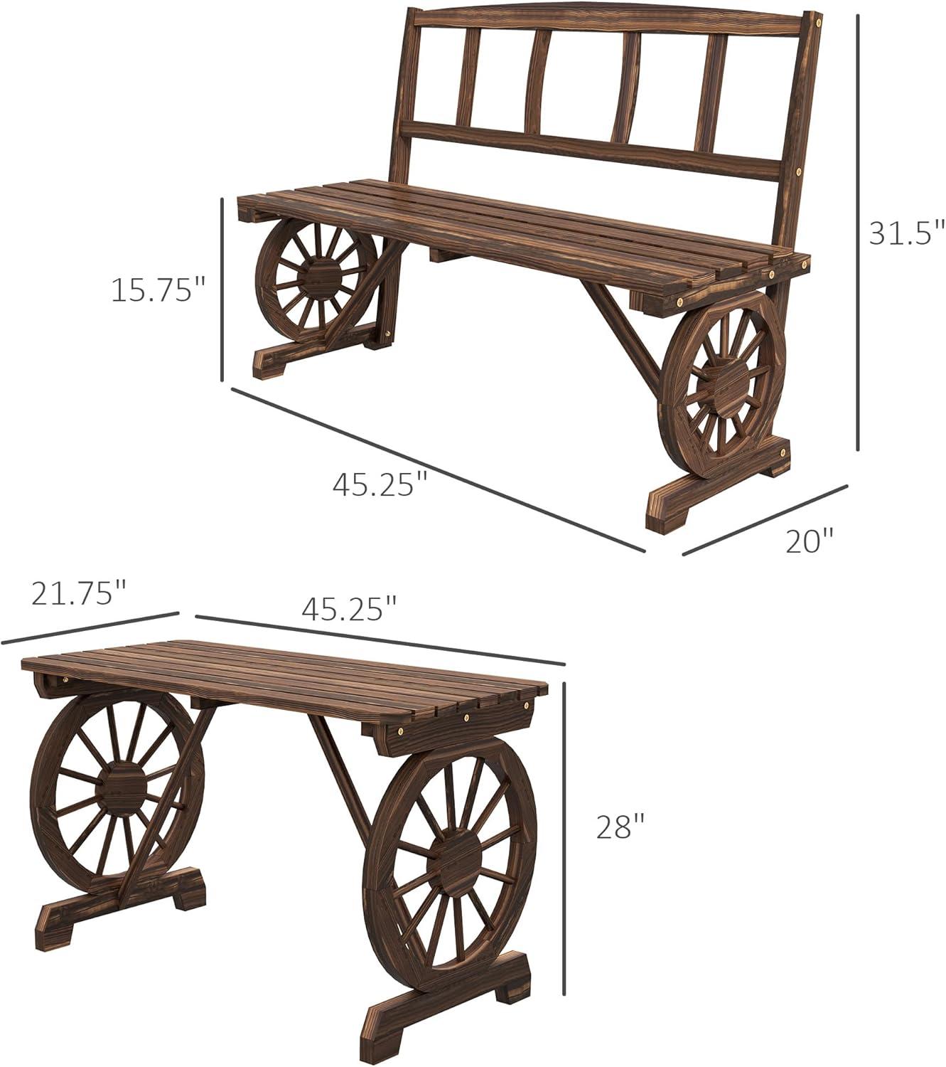 From our experience, this outdoor set strikes a fine balance between charm and practicality, making it a versatile addition to any backyard or deck. The rich carbonized wood finish combined with the distinctive wagon wheel design creates an inviting rustic aesthetic that stands out without overwhelming your garden. Notably, the varnished pine construction ensures durability against weather fluctuations and quick water drainage after rainfall, allowing us to enjoy our outdoor space with minimal downtime. With seating comfortably accommodating four, the benches hold substantial weight, making it suitable for gatherings with family or friends, whether for meals, games, or casual conversations.