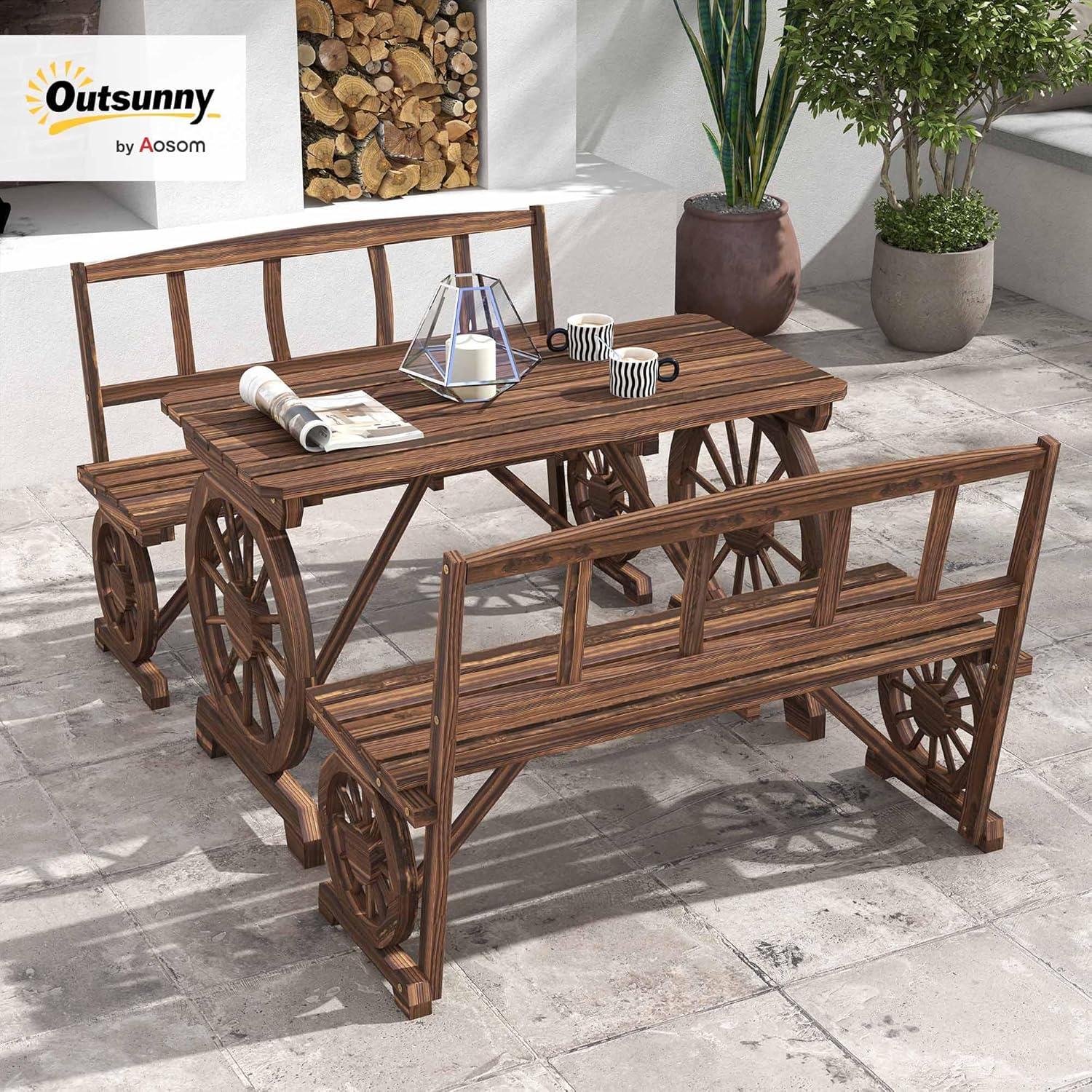 We recently had the chance to set up adn use the Outsunny Outdoor table and Chairs set,designed to seat four comfortably with its two spacious benches and a roomy wooden table. Crafted from carbonized pine with a rustic wagon wheel motif, this three-piece patio set caught our eye for both its unique aesthetic and practical features-like the water-safe varnished finish that helps it withstand the elements. As we assembled and spent time around this outdoor furniture, we took note of its strengths and the details that require a bit of care, and we’re ready to share our honest thoughts on how it fares for backyard dining and relaxation.