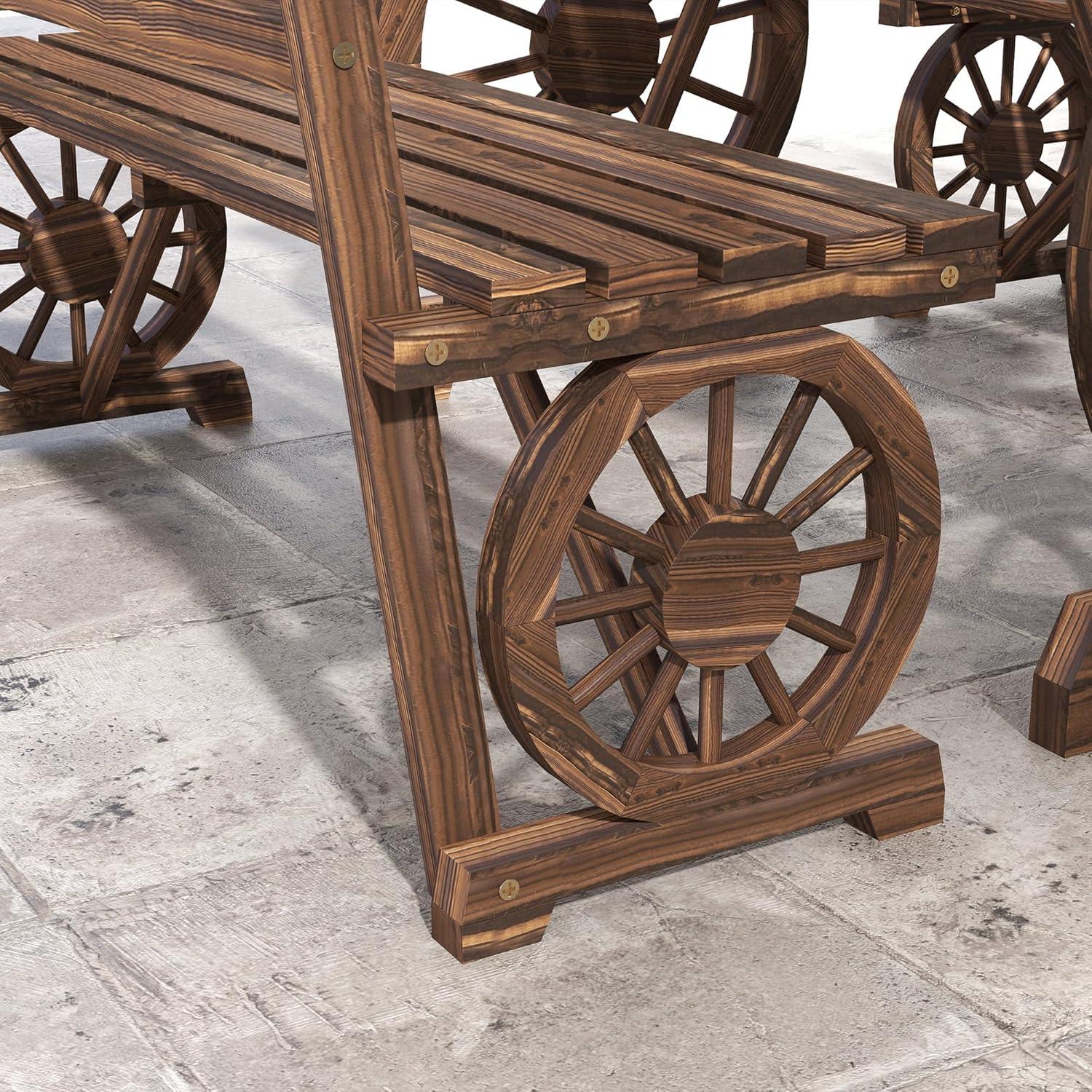 The standout design feature is definitely the signature wagon wheel motifs, adding a rustic charm that perfectly complements backyard or garden settings.Even though assembly requires patience due to the intricate details and caution with some sharp edges, the end result is a visually appealing centerpiece that blends aesthetics with functionality. The dark carbonized finish offers both weather resistance and a rich, inviting look. Here’s a quick overview of the bench’s key comfort and design elements: