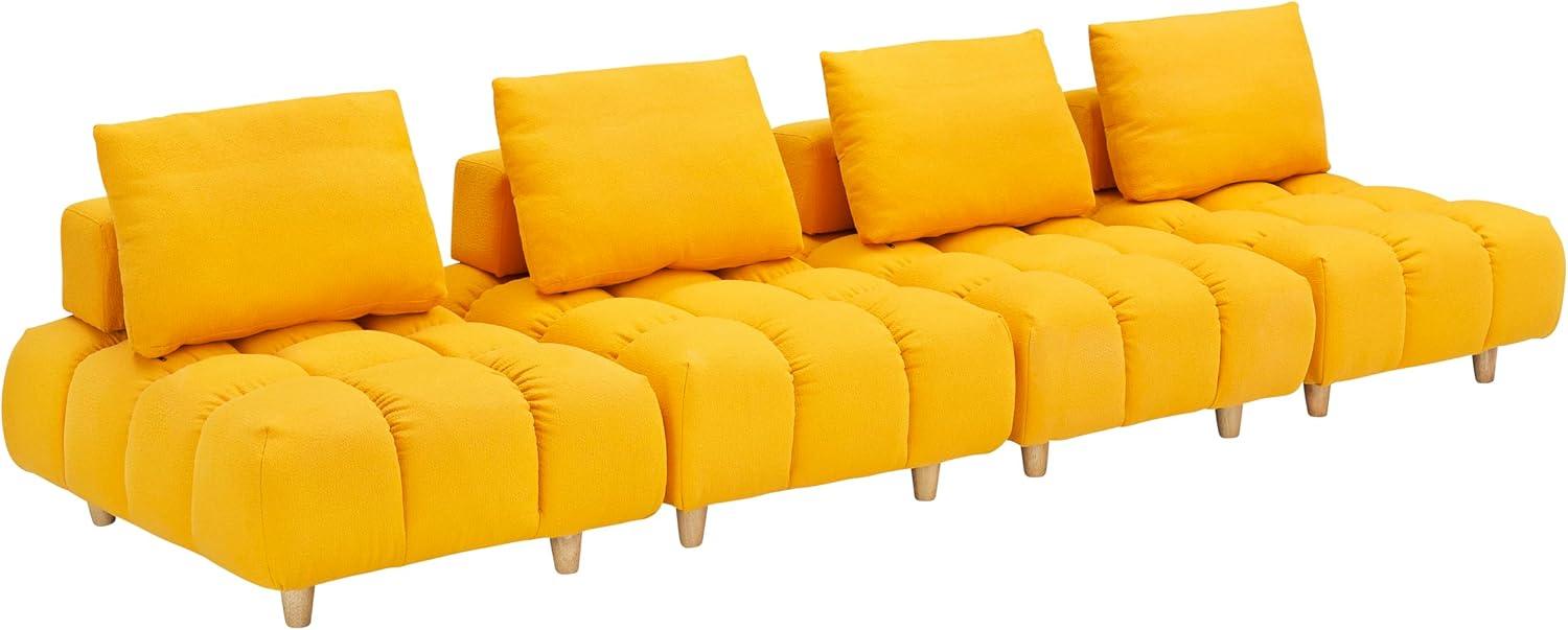 The vibrant yellow hue of this sectional instantly breathes life into any room, transforming a simple living space into a lively, welcoming environment. It balances brightness without overwhelming, creating a cheerful yet relaxing ambiance that makes us eager to gather with family or unwind after a long day.The modern design merges clean lines with plush comfort, fostering an atmosphere that is both contemporary and cozy.Its softness invites us to sink in and stay awhile, adding warmth and personality to the room without sacrificing style.