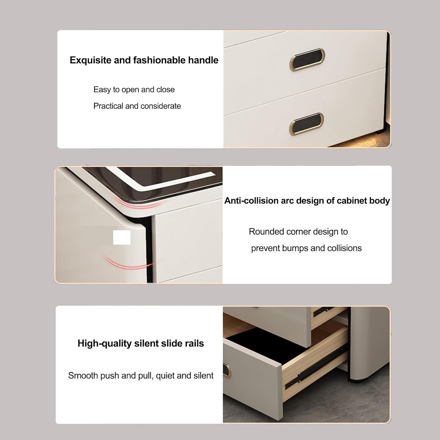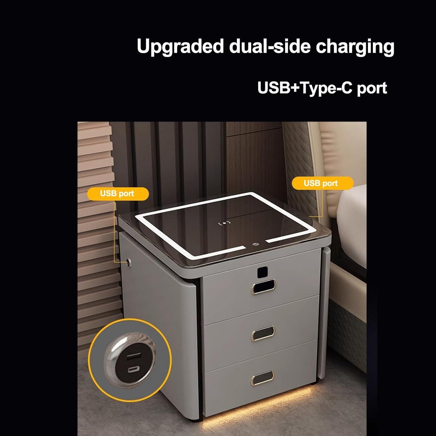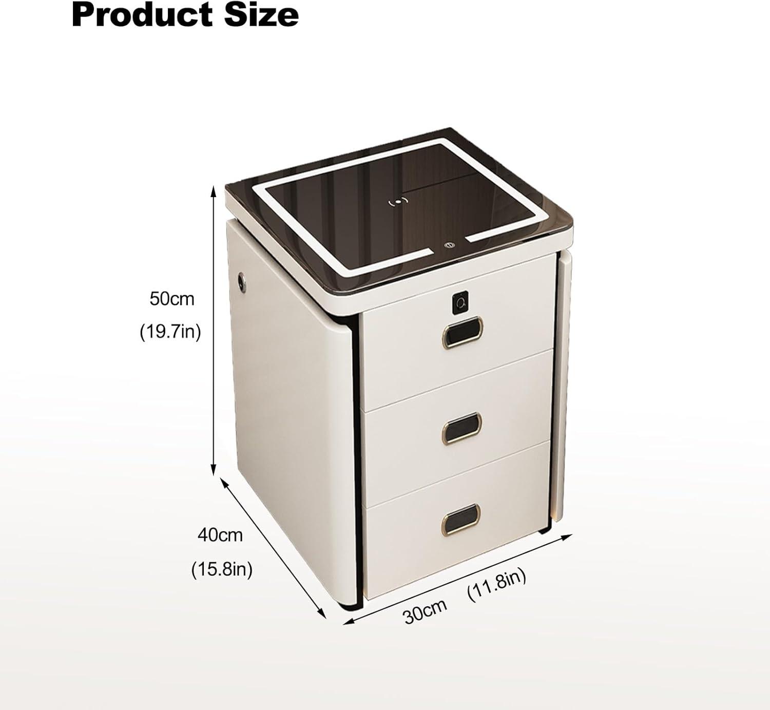 We believe this smart nightstand is ideal for those who seek a blend of modern functionality and elegant craftsmanship in their bedroom furniture. If you value organized spaces,the ample storage provided by the three smooth-sliding drawers offers a smart solution to keep essentials like books,glasses,or nighttime devices neatly tucked away. Its fingerprint lock feature adds an extra layer of security for storing valuables, especially appealing to anyone who prioritizes both convenience and privacy. Additionally,the embedded Bluetooth speaker and wireless charging ports make it a top pick for tech enthusiasts who want to integrate entertainment and effortless device power-ups right at their bedside.