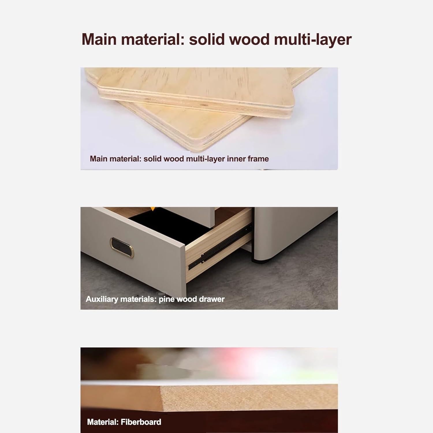 Blending modern technology with elegant craftsmanship, this nightstand instantly elevates any bedroom space. Constructed from solid pine wood with multiple layers in the drawer frames, it promises durability and long-lasting use. The entirety of the piece is beautifully wrapped in a scratch-resistant cat claw leather that adds a soft, breathable texture and effortless maintenance. designed with fully polished edges and soft leather wrapping on corners, it ensures safety for families while maintaining a sleek and sophisticated appearance. Stability is enhanced by a uniquely integrated feet design combined with anti-slip rubber foot pads featuring double cushioning, making it sturdy and collision-resistant.