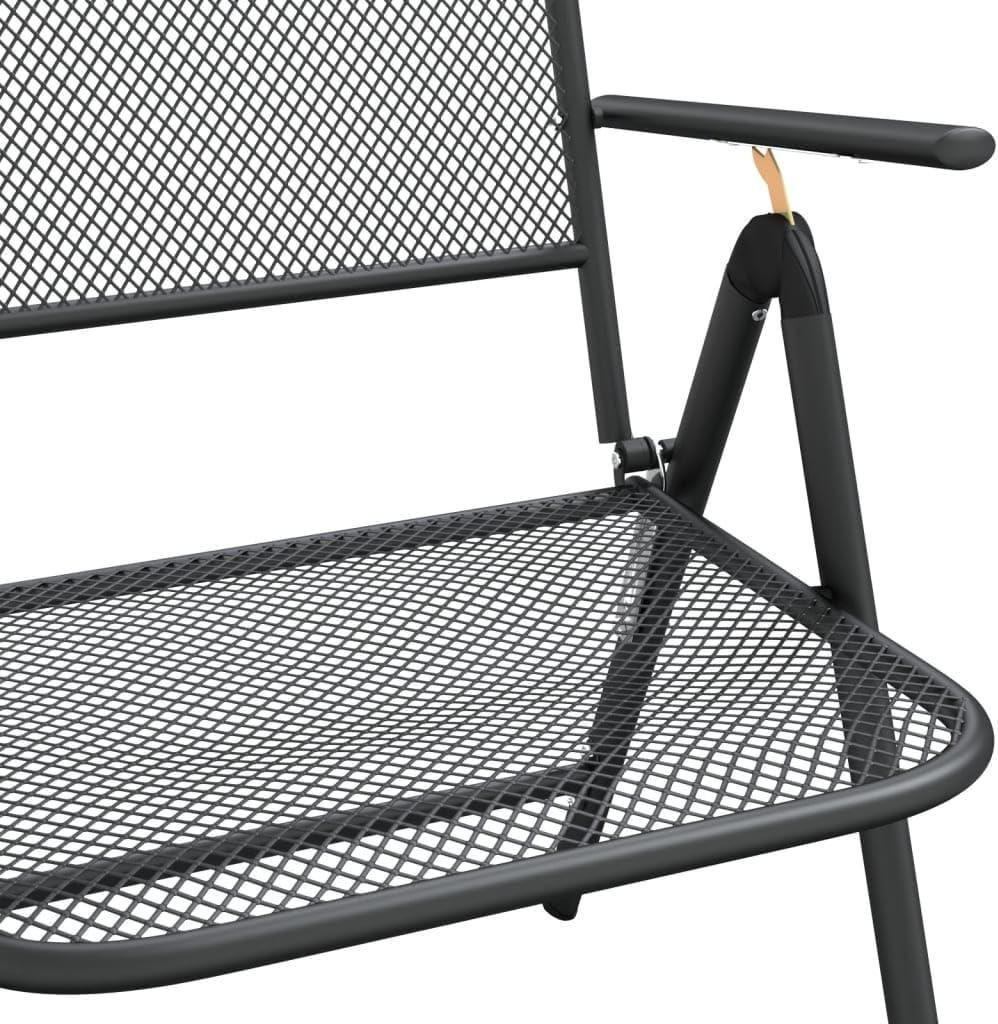 One of the most striking features is the sturdy expanded metal mesh design with a sleek anthracite finish that brings a modern edge to any outdoor space.This mesh not only adds aesthetic appeal but also offers practical benefits, such as enhanced water drainage that prevents pooling after rain, helping to maintain durability over time. The powder-coated e-coating effectively protects against rust and weather damage, ensuring the set withstands the elements season after season while retaining its sophisticated look.