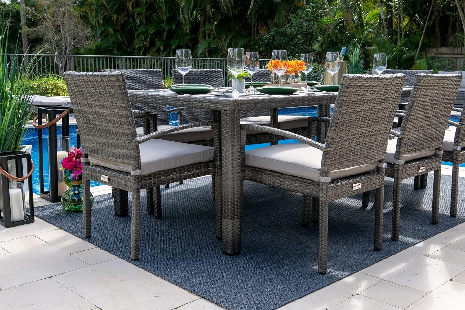 Timeless Elegance: Classic wicker design with a‌ modern twist thanks to the flat-weave resin ​wicker – it’s stylish yet durable. Assembly Required: ​ While not intricate, ⁢putting together⁣ eight chairs and a large table does take some time (about⁢ 1-2 hours).