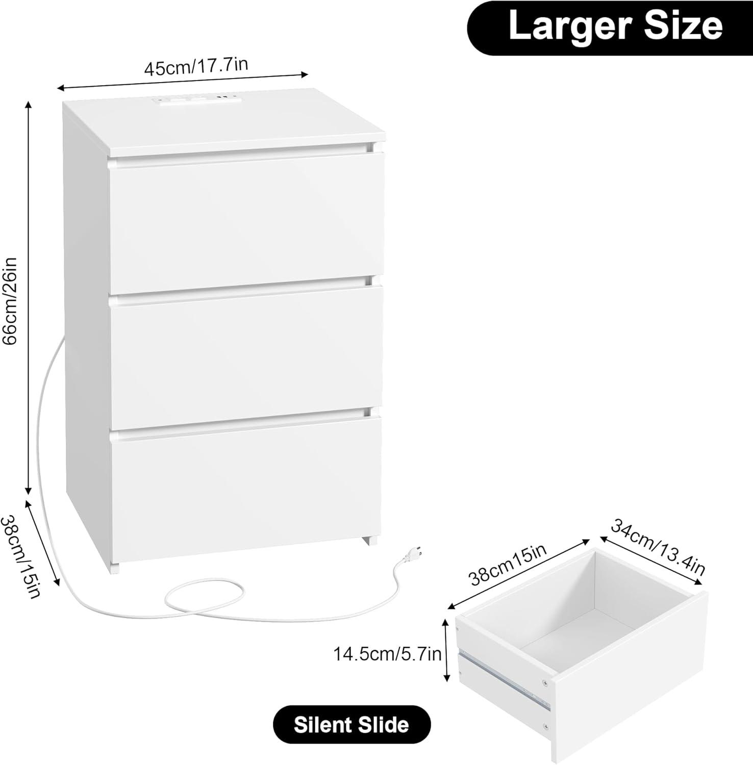 The build quality stands out thanks to the smooth, silent drawer slides that enhance usability, turning what could be a noisy, frustrating task into a quiet and effortless experience. The sturdy wooden frame paired with a pristine white finish delivers both durability and style, suitable for bedrooms, offices, or living areas alike. Plus, the integration of USB ports and power outlets directly into the design offers a practical upgrade, making it a versatile piece that embraces modern tech needs without sacrificing aesthetics.