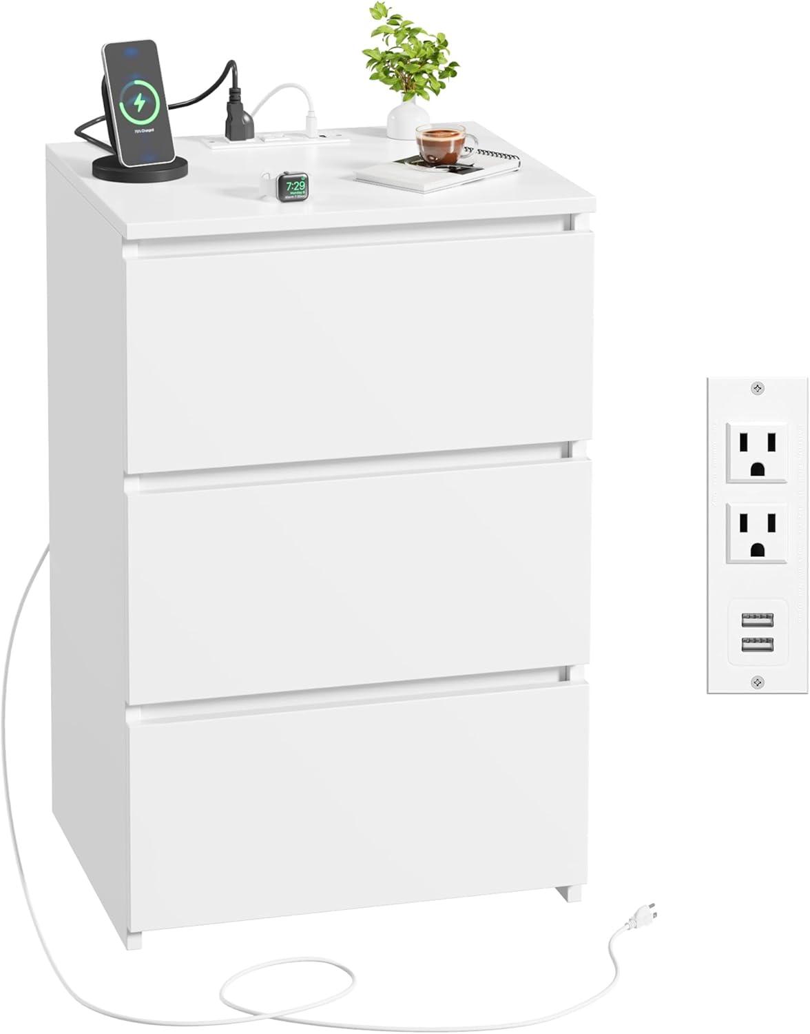 Why We Love the FOTOSOK White Nightstand with Charging Station