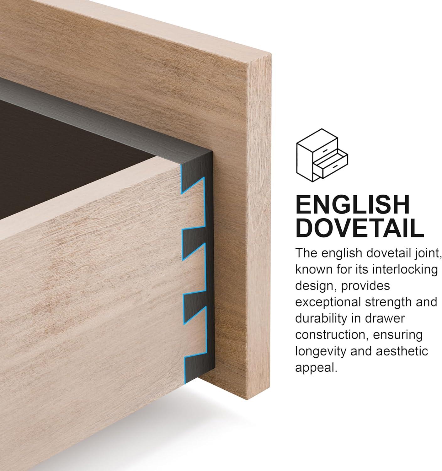 | english Dovetail Joints | Enhanced durability and drawer longevity |