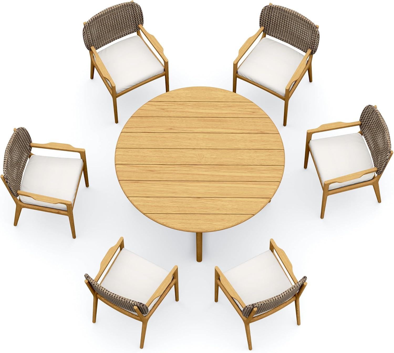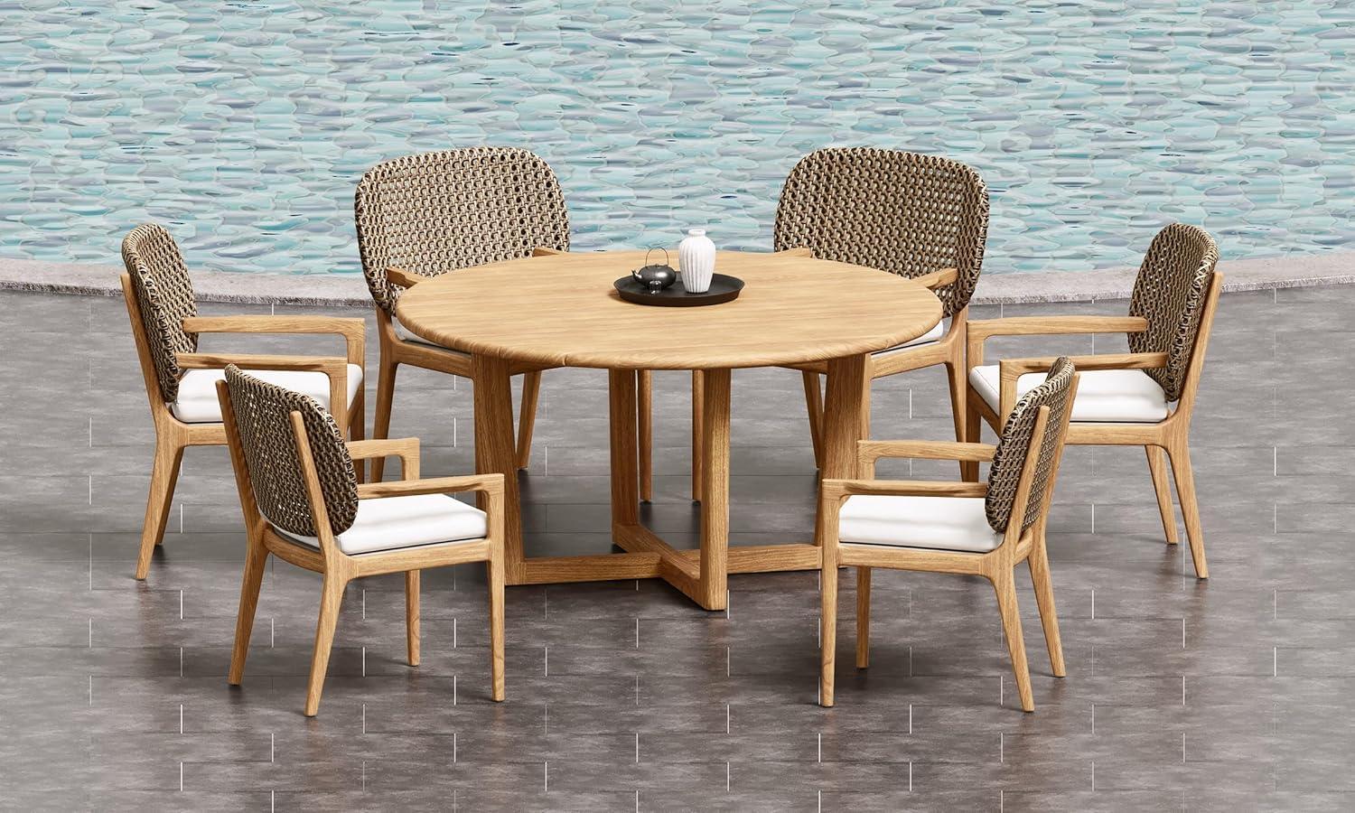 | Round Table | 59 W x 59 D x 29.5 H | Solid Teak Wood |