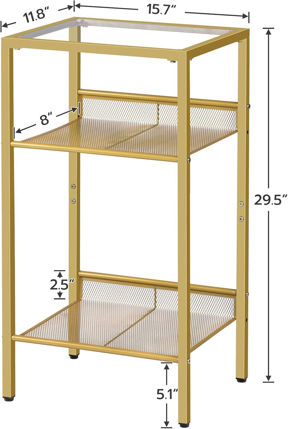 Tall End Table 15.7″ x ⁢11.8″ x ⁢29.5″ H ~15 lbs Tempered Glass + Mesh Rack