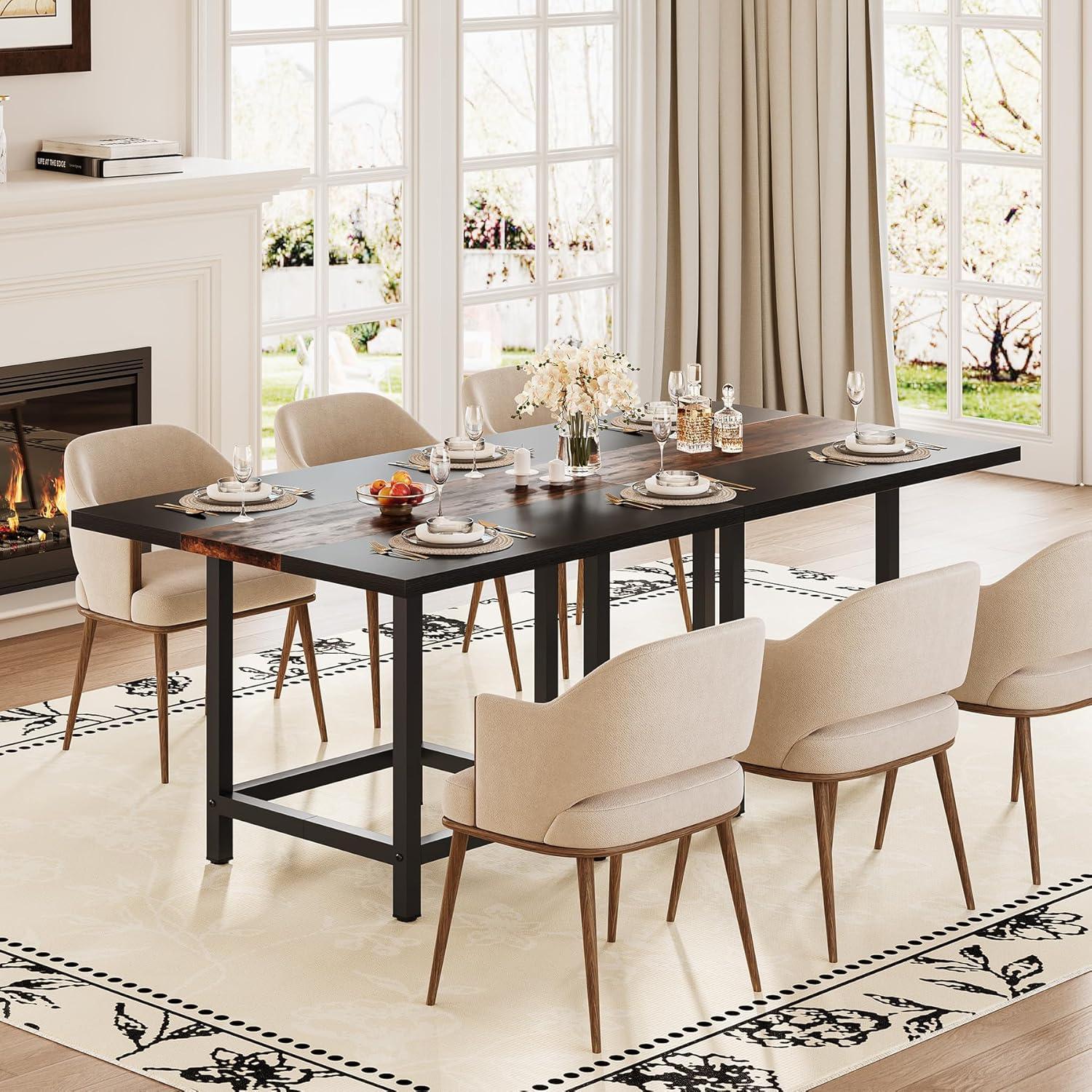 we were immediately drawn to the warm, inviting feel this table brings to our dining space. Its two-tone vintage wooden top combined with sleek black metal legs creates a perfect harmony between rustic charm and modern simplicity. This balance not only enhances the aesthetic appeal but also complements various decor styles-be it traditional, farmhouse, or country cottage-making it a versatile centerpiece that truly elevates our dining area.