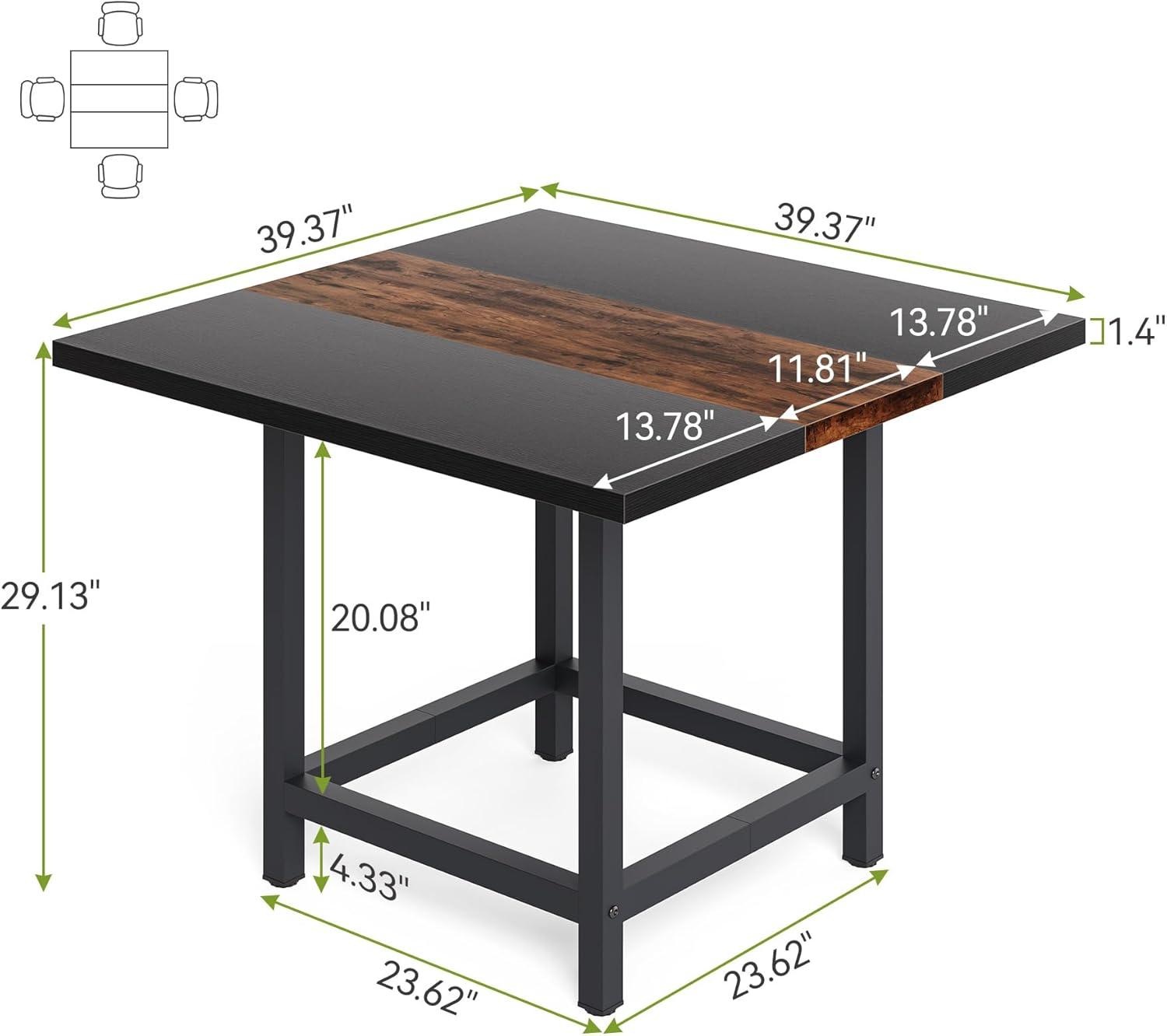 We found this dining table to be the perfect fit for compact living spaces, measuring 39.4″ square with a height of 29.5″. Its size comfortably accommodates four people without feeling cramped, thanks in part to the 31″ legroom clearance that allows for a relaxed dining experience. The two-tone rustic wooden tabletop paired with sturdy black metal legs gives it a charming, versatile look that blends effortlessly with various interior styles-from traditional to modern farmhouse, and even country cottage. This versatility makes it a stylish choice whether you’re using it as a formal dining surface, a casual coffee table, or even a workspace.