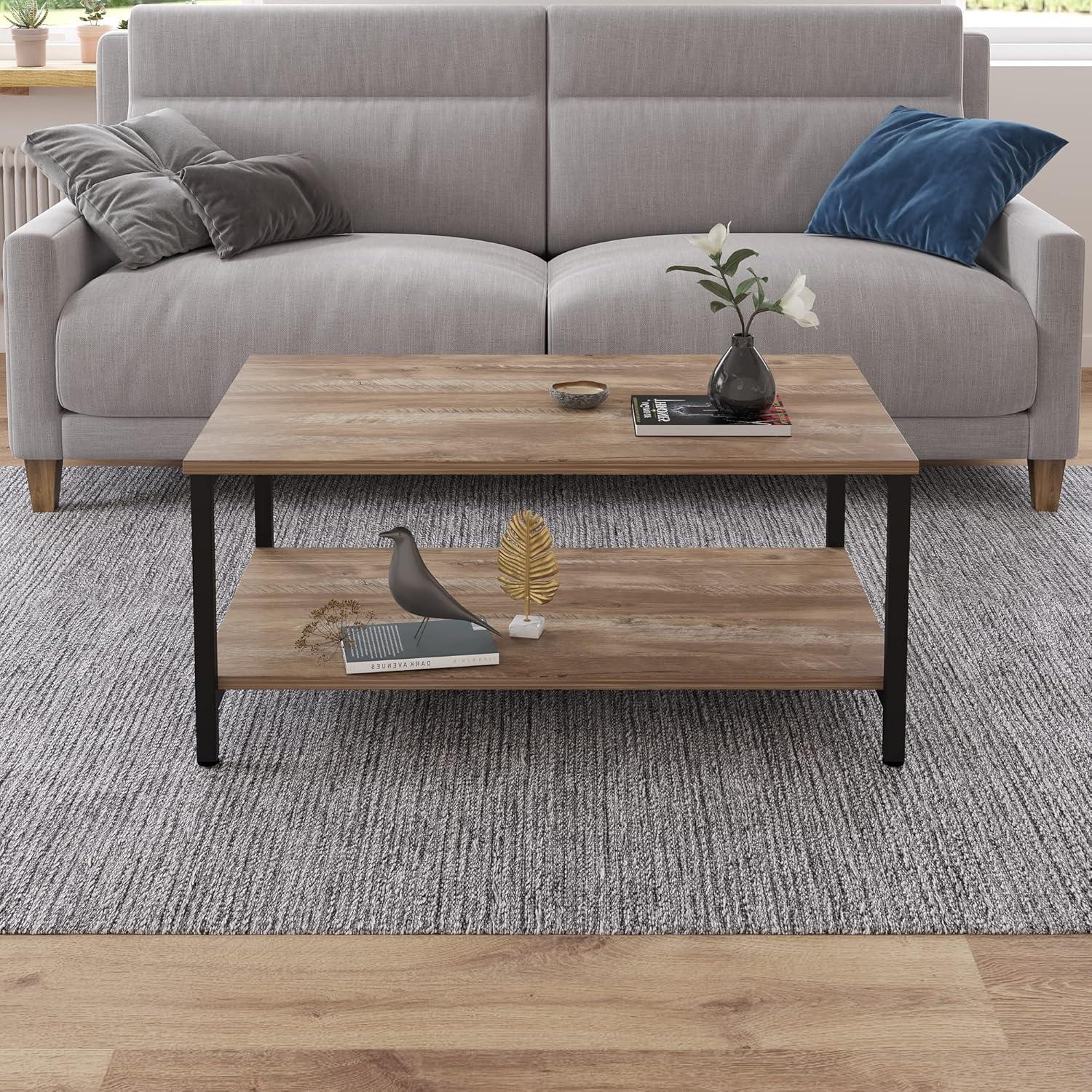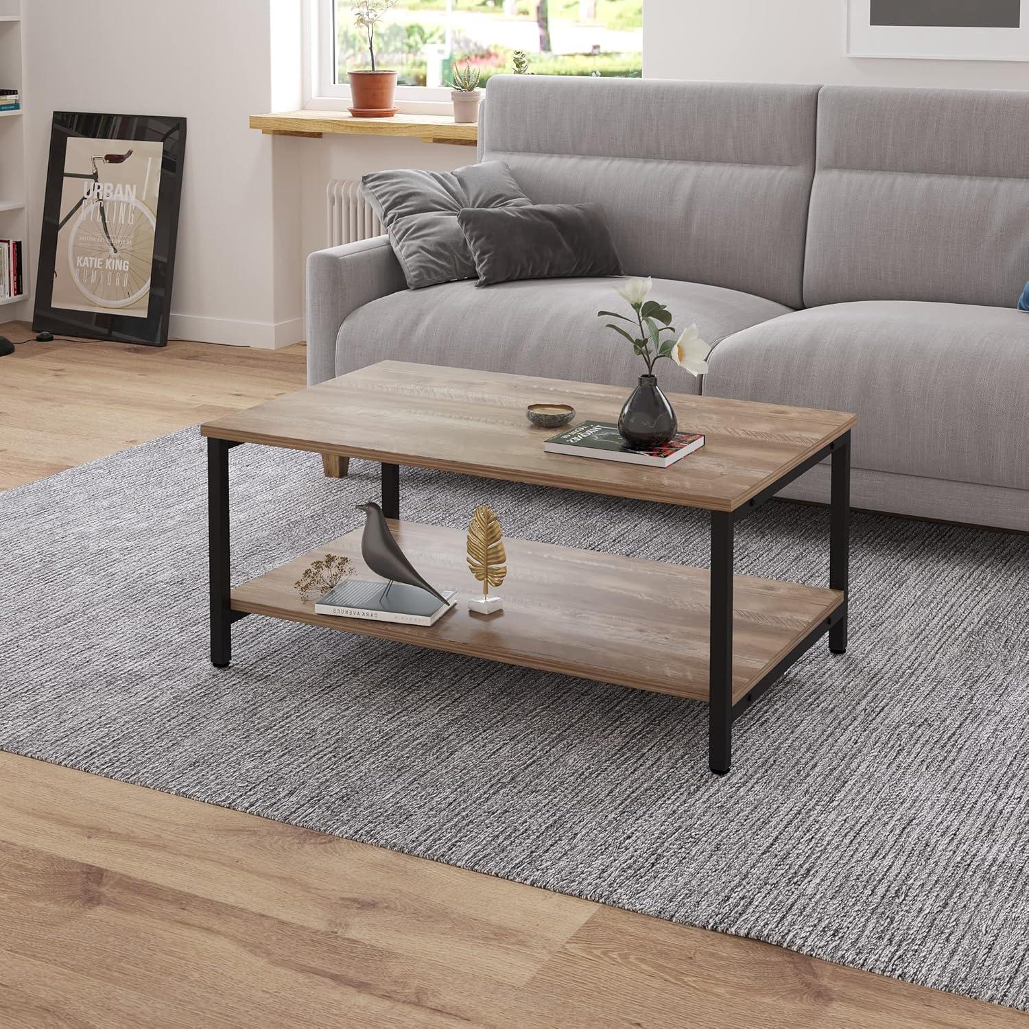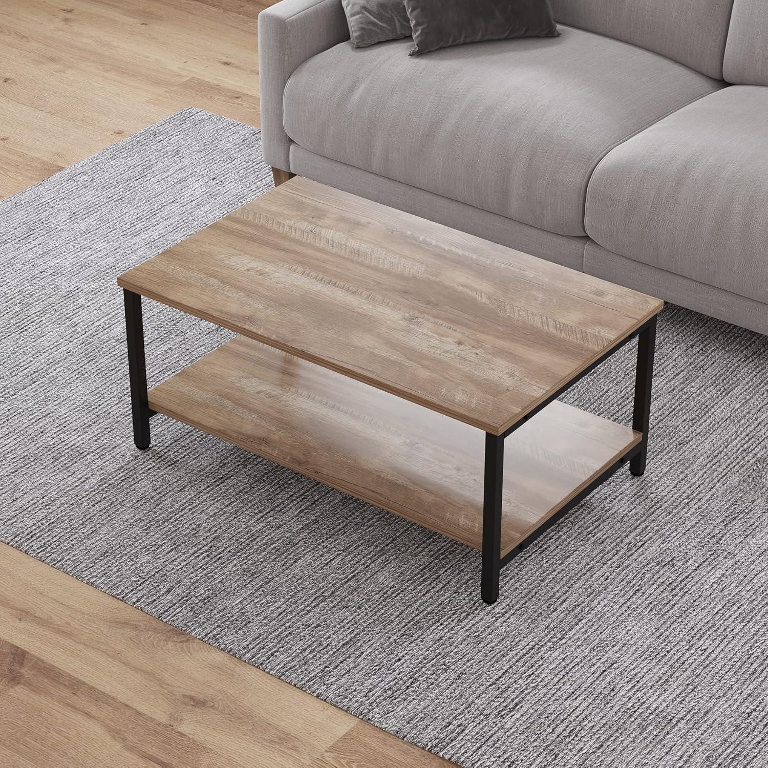 One of the standout features of this coffee table is its cleverly designed two-tier storage system. The spacious lower shelf provides ample room for organizing books, board games, or cherished photo albums, keeping clutter off your main tabletop while still keeping these items within easy reach.This setup makes it especially practical for living rooms or game rooms where multifunctional space is key.The durable melamine surface and steel frame not only support everyday items securely but also handle the occasional heavier load without worry.