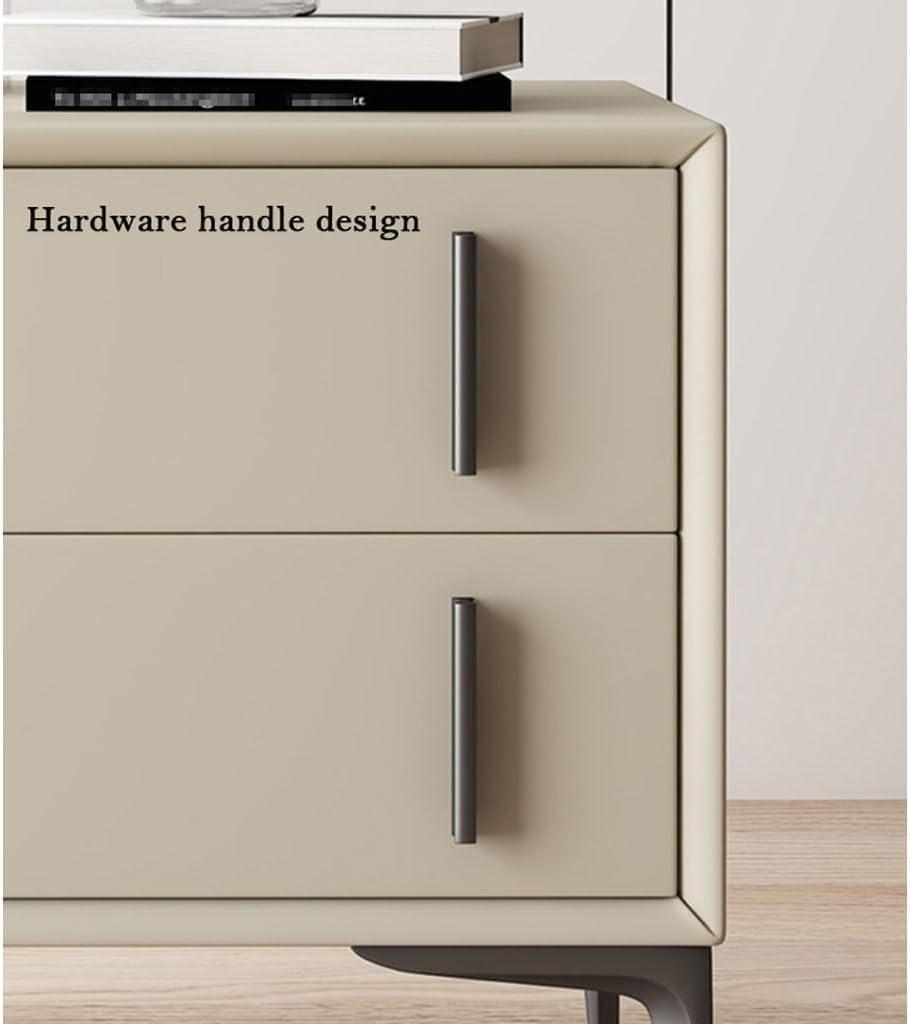 The build quality reflects a commitment to both function and style. The drawers glide smoothly thanks to quality metal hardware and provide ample storage with dust-proof, closed compartments that keep personal items neatly tucked away. The solid wood frame guarantees durability, while the leather finish on the drawers resists everyday wear with a soft, inviting texture. Additionally, the compact size and minimalist handles maintain the piece’s sleek profile without sacrificing practical utility.