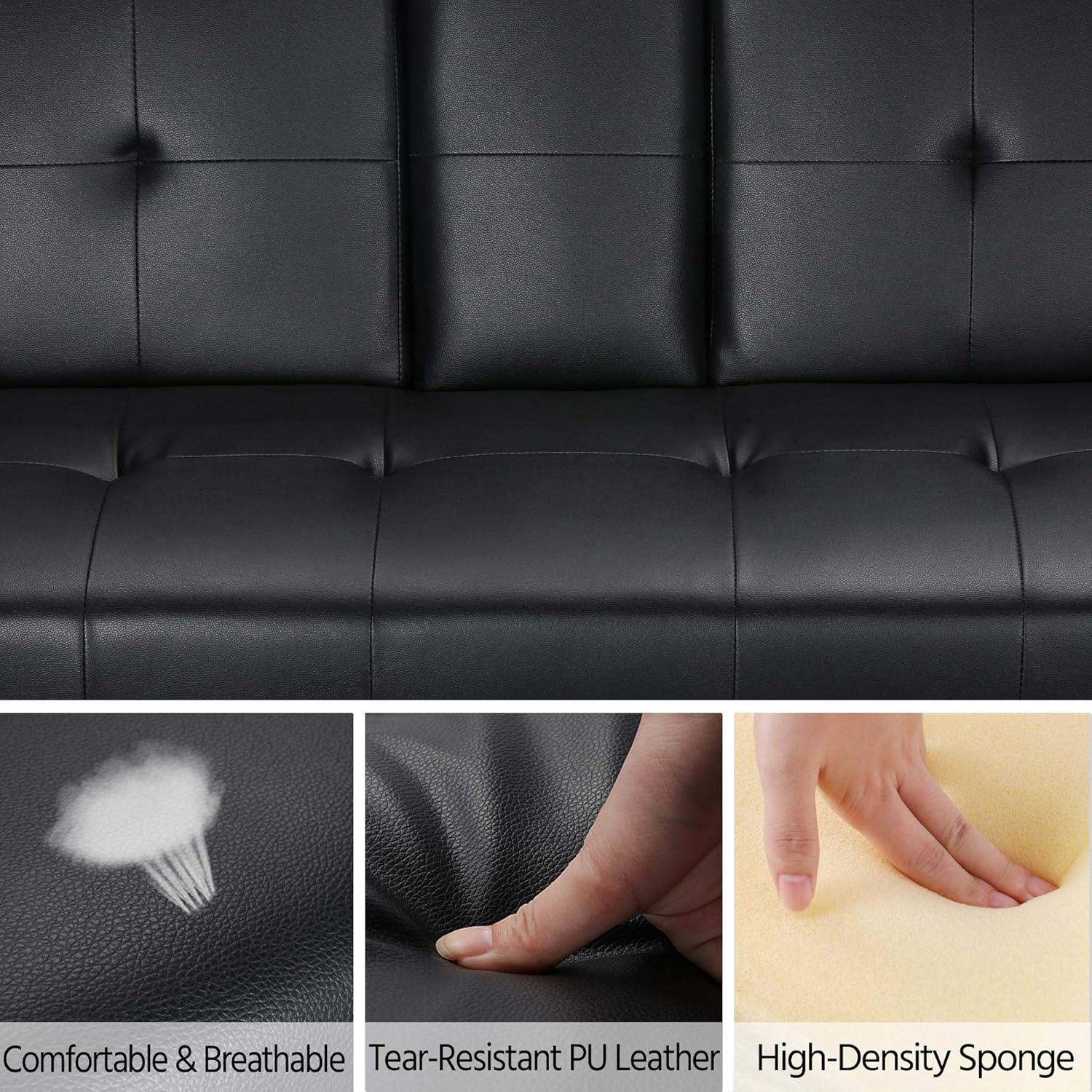 | Modern Aesthetic: Sleek black faux leather offers a crisp look that fits modern and minimalist decor. | Sliding Issue: Sofa can be lightweight, making it prone to sliding on smooth floors. |