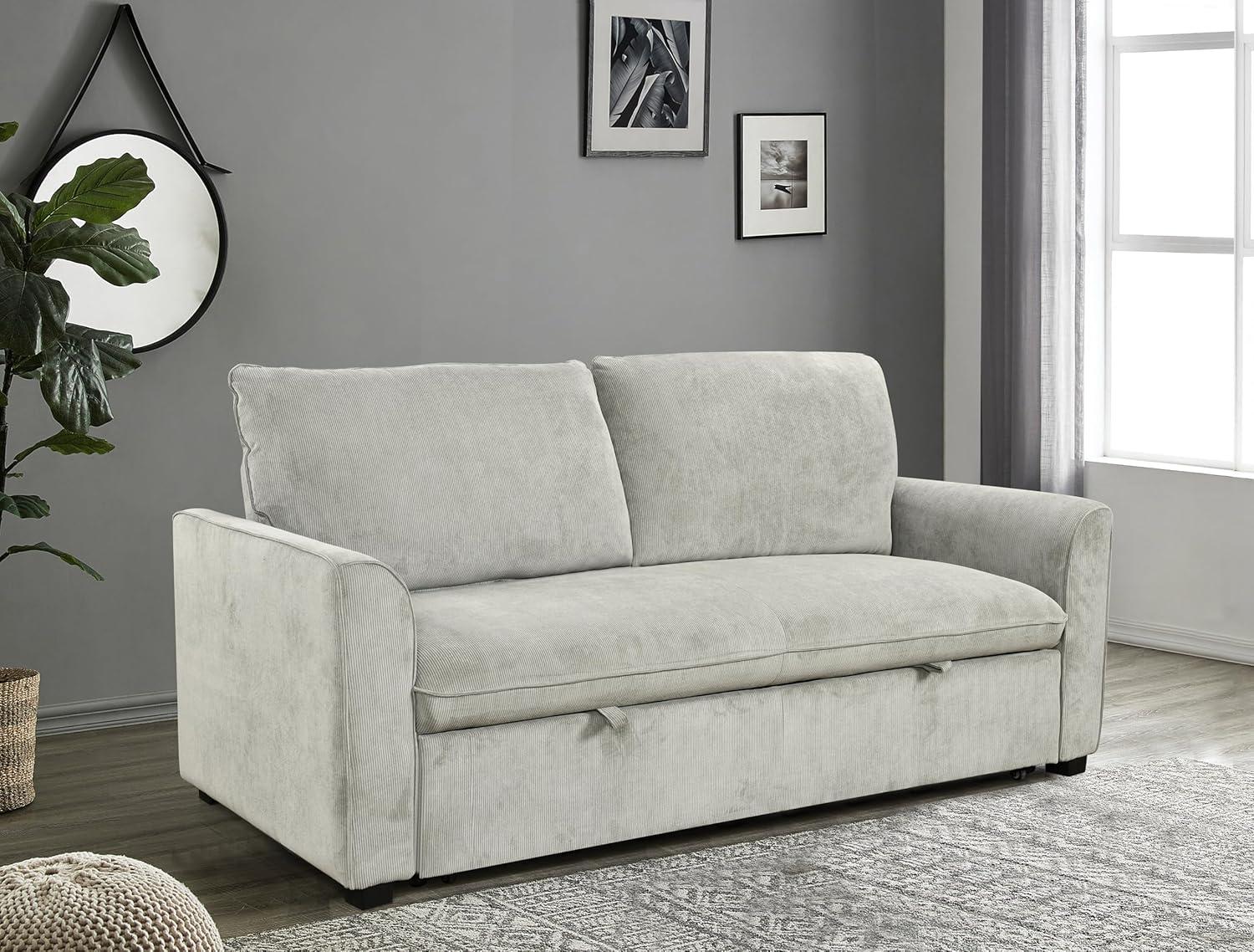 Over time you notice how the Queen Size Convertible Sleeper Sofa Bed — the 78-Inch Pleasant Pull-Out Loveseat for Small Spaces, RVs, and More in beige (grey) — settles into a corner of your life, finding a steady place as the room is used. In daily routines it becomes the spot where mornings are stretched and short, sideways rests happen, its give and little rebounds becoming familiar rather than surprising. The fabric softens and takes on the faint signs of regular use, small wrinkles and scuffs that speak to ordinary handling and repeated evenings. By evening it stays.